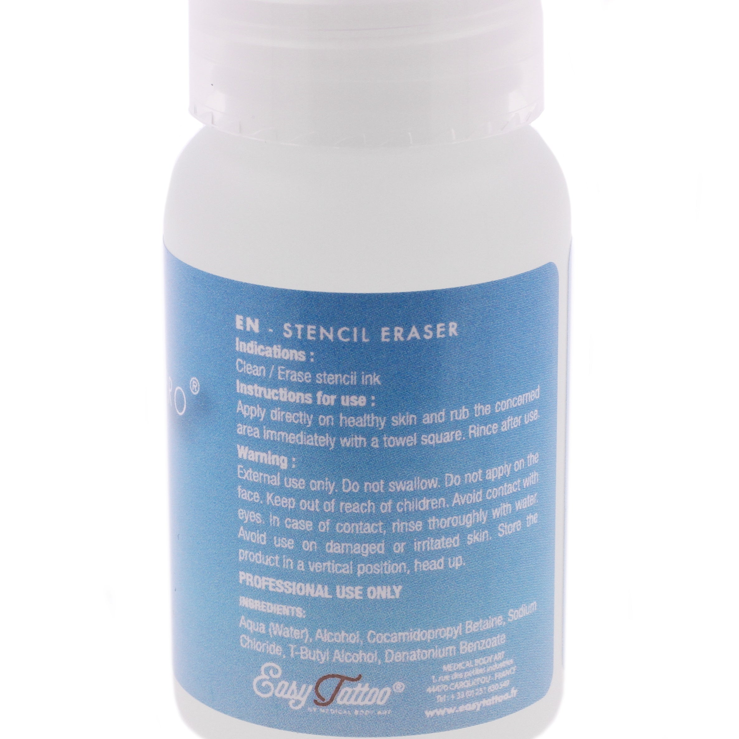Easily correct or adjust your tattoo stencil skin prints with Stencil Eraser by Otzi (by Easytattoo) Professional! Simply apply the eraser to your tattoo stencil proofing, gently rub clean and proceed the tattoo process as needed. Contents: 30 ml.