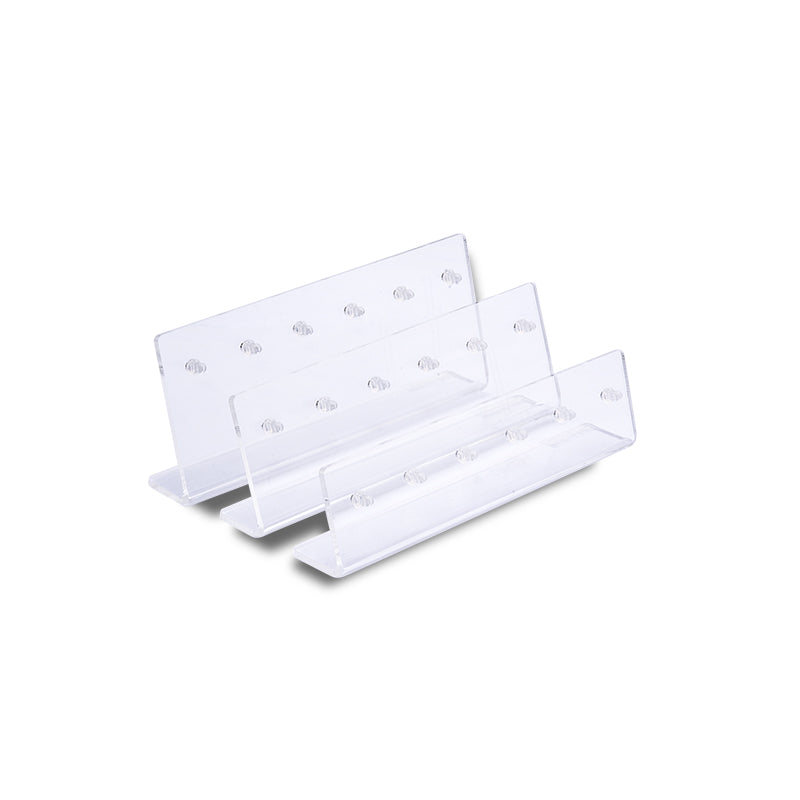 Handy, acrylic display for holding piercing jewelry. These acrylic displays will look great on any counter or display cabinet. The displays are fitted with clip that will hold 0,8 mm up to 1,2 mm piercing jewelry. Great for shwoing piercing rings, labret studs or any other piece of piercing jewelry to your custoers . This set consists of 3 displays with the following sizes: 12 x 3 cm, 12 x 4 cm en 12 x 5 cm.
