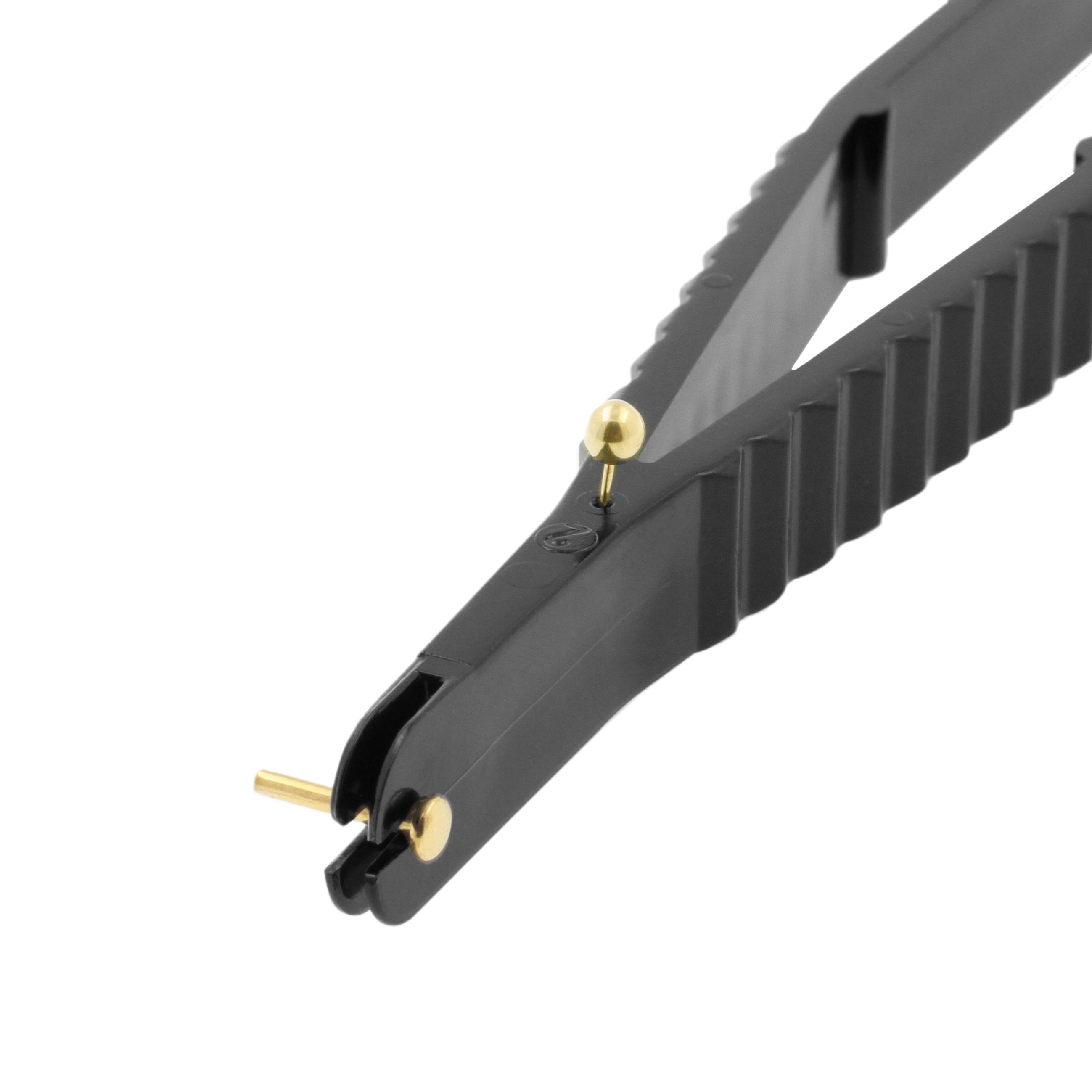 Sterile prepacked piercing clamp made of plastic, ready to use! Perfect for all kinds of piercings. The clamp measures 12,5 cm in length with a 5 mm rounded slotted cutout at the end, making these clamps easy to remove once the piercing process is completed. Single use, easy clean up afterwards. EO sterilized and CE approved. (Box contents: 100 pcs)