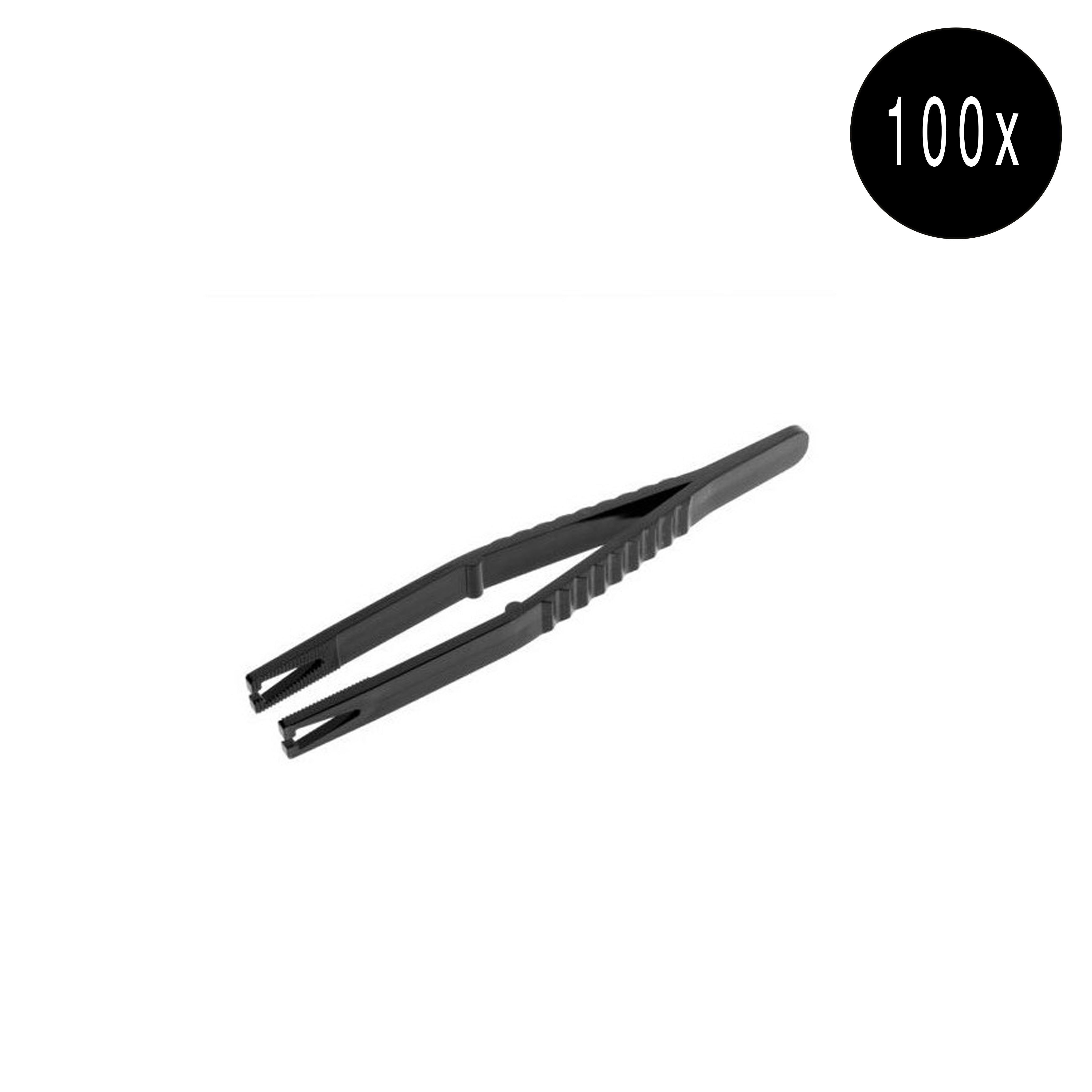 Plastic Box - Sterile Prepacked Piercing Forceps Triangular - 100 pcs Black