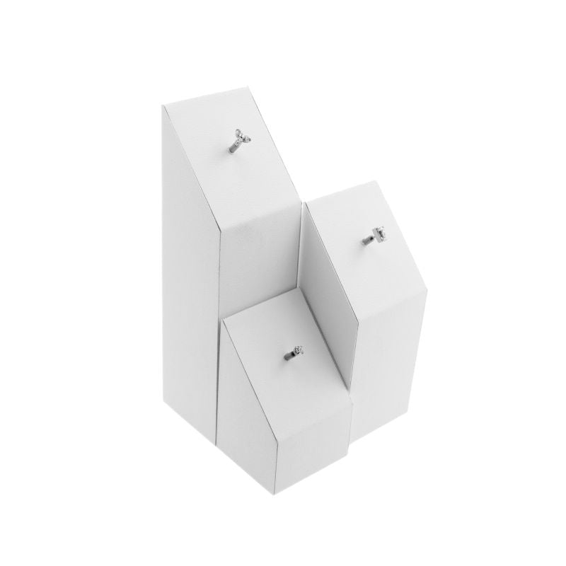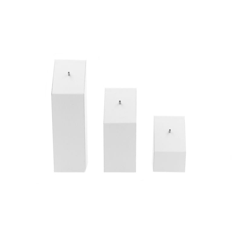 Beautiful plastwood display, for presenting your jewelry collection to your customers. These lovely displays will look great on any counter or display cabinet. Set of 3 pieces. Sizes: 26 mm x 26 mm x 38 mm, 26 mm x 26 mm x 63 mm & 26 mm x 26 mm x 88 mm. Suitable for threadless piercing jewelry.
