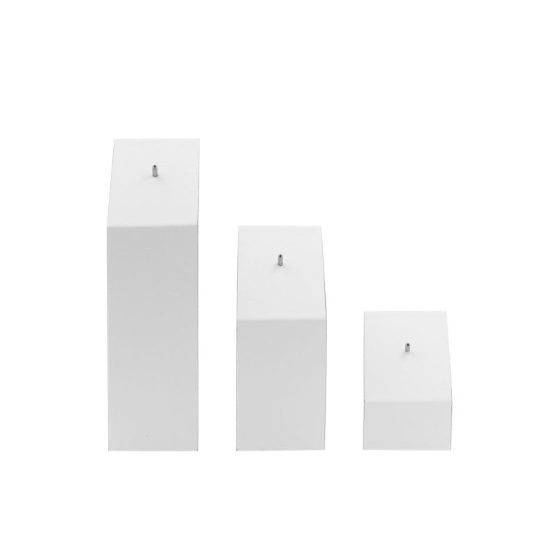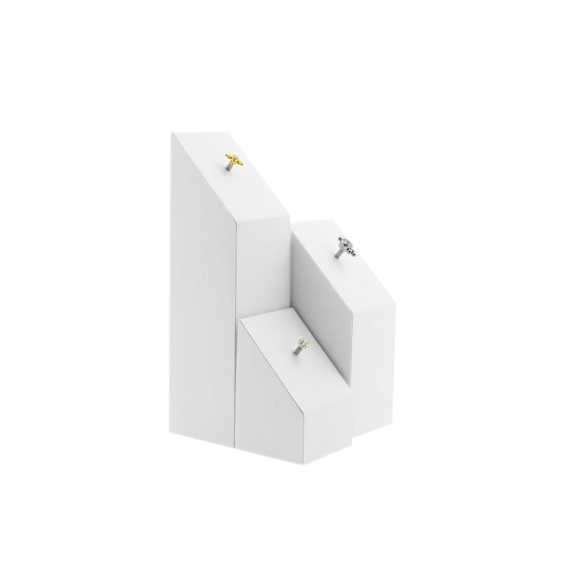 Beautiful plastwood display, for presenting your jewelry collection to your customers. These lovely displays will look great on any counter or display cabinet. Set of 3 pieces. Sizes: 26 mm x 26 mm x 38 mm, 26 mm x 26 mm x 63 mm & 26 mm x 26 mm x 88 mm. Suitable for 1,2 mm internally threaded piercing jewelry.