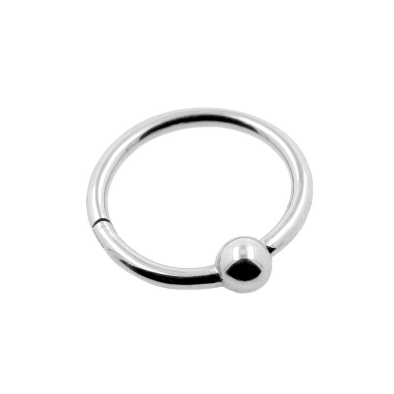 Easy to use click ring for your piercings! This click ring is made of surgical steel and set with a fixed bead at the bottom of the ring, giving the ring the appearance of a ball closure ring but without the opening and closing hassle! Our click rings are perfect for all kinds of piercings and very easy to use. The segment of this click ring is hinged and can easily be opened and closed. Simply open the ring, insert it into your piercing and click it shut. Done!
