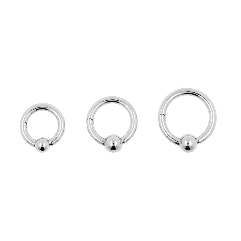 Easy to use click ring for your piercings! This click ring is made of surgical steel and set with a fixed bead at the bottom of the ring, giving the ring the appearance of a ball closure ring but without the opening and closing hassle! Our click rings are perfect for all kinds of piercings and very easy to use. The segment of this click ring is hinged and can easily be opened and closed. Simply open the ring, insert it into your piercing and click it shut. Done!