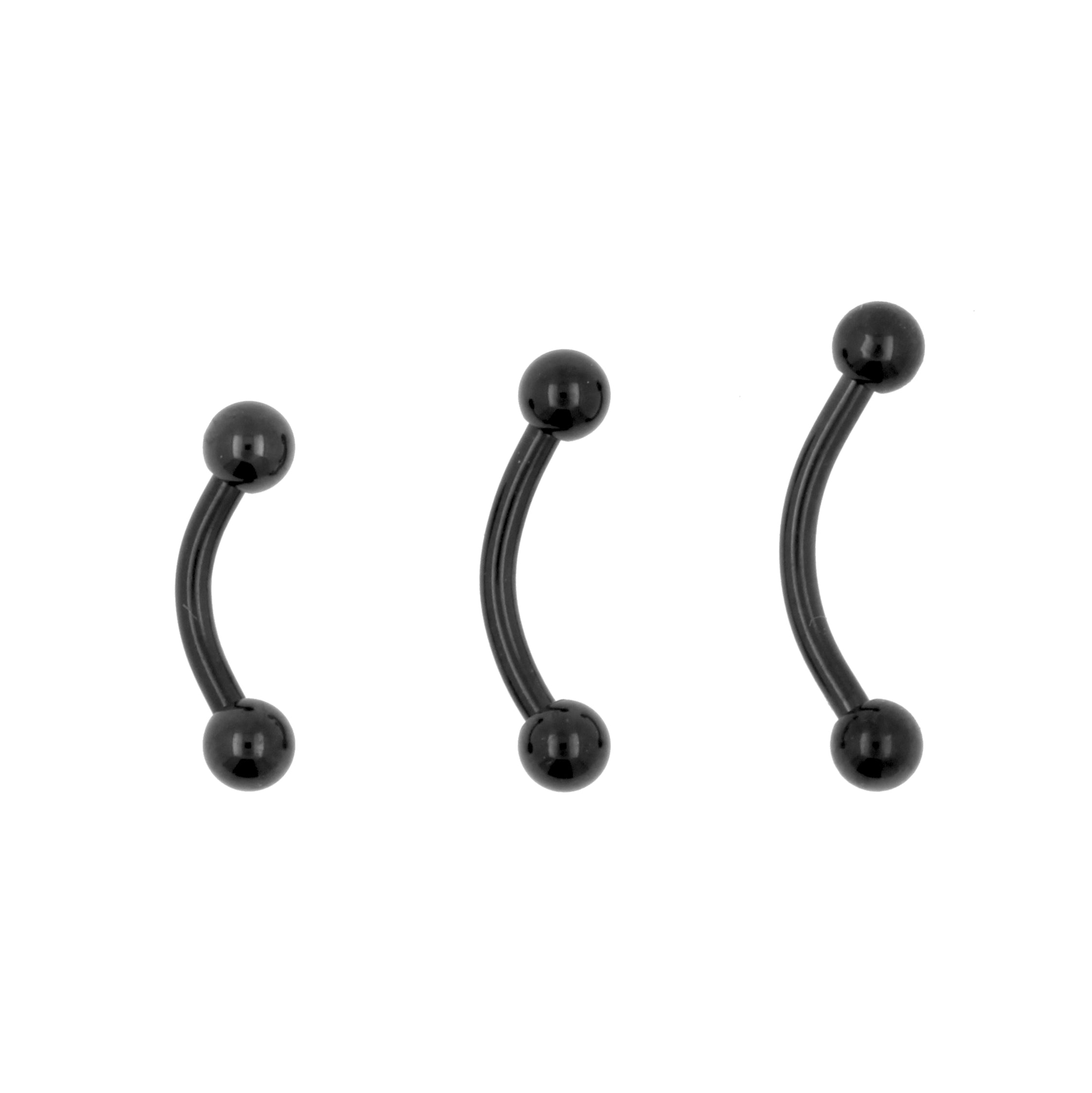 The essential basics! Bananabell made of black P.V.D. coated 316L surgical steel with two threaded balls. The bananabell measures 1,2 mm in thickness and is especially suited for navel piercings.