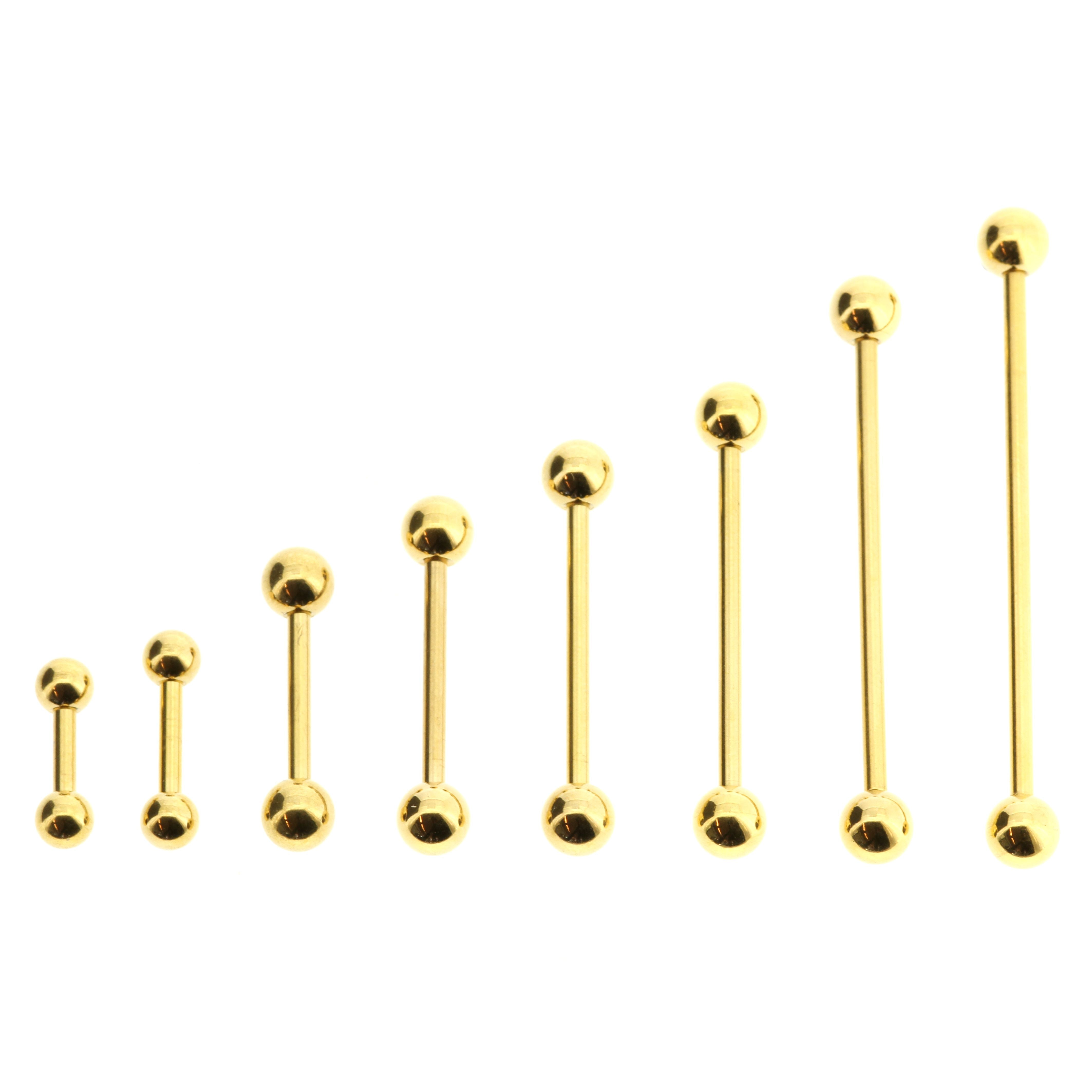 The essential basics, with a touch of real gold! These barbells measure 1,6 mm in thickness and are made of surgical 316L steel, with a P.V.D coating made of real 24K gold! The new coating techniques that are used to create this piece of jewelry ensure top notch quality and a wear-resistant, high sheen finish. Great to keep at hand whenever you need a replacement, or simply want to switch to another size. Our barbells are a perfect match with our 24k gold P.V.D. coated piercing jewelry range.