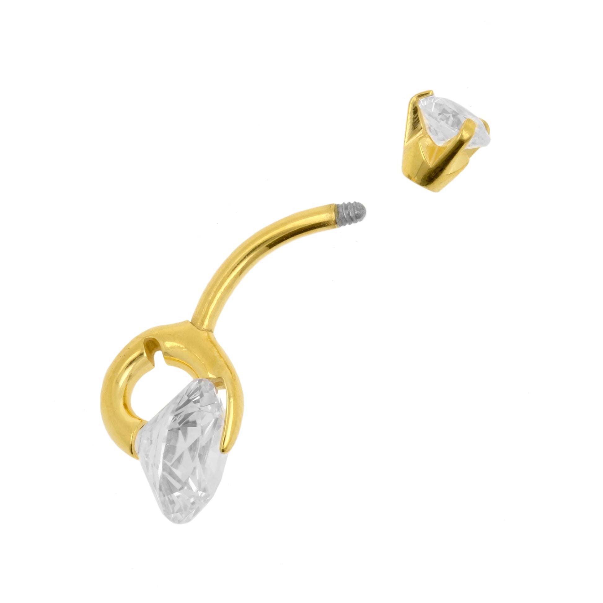 Surgical Steel Belly Bar With Floating Zirkonia Gold