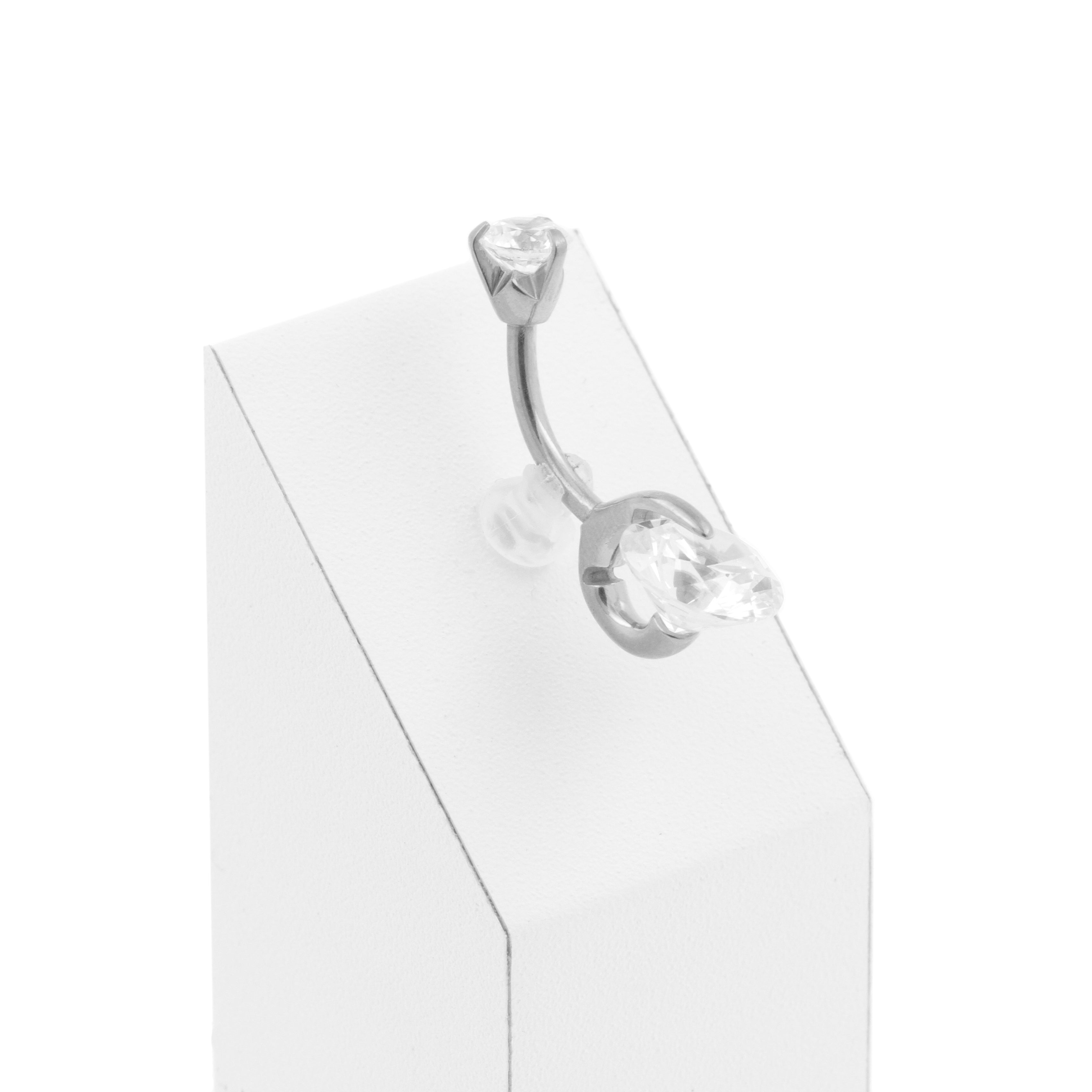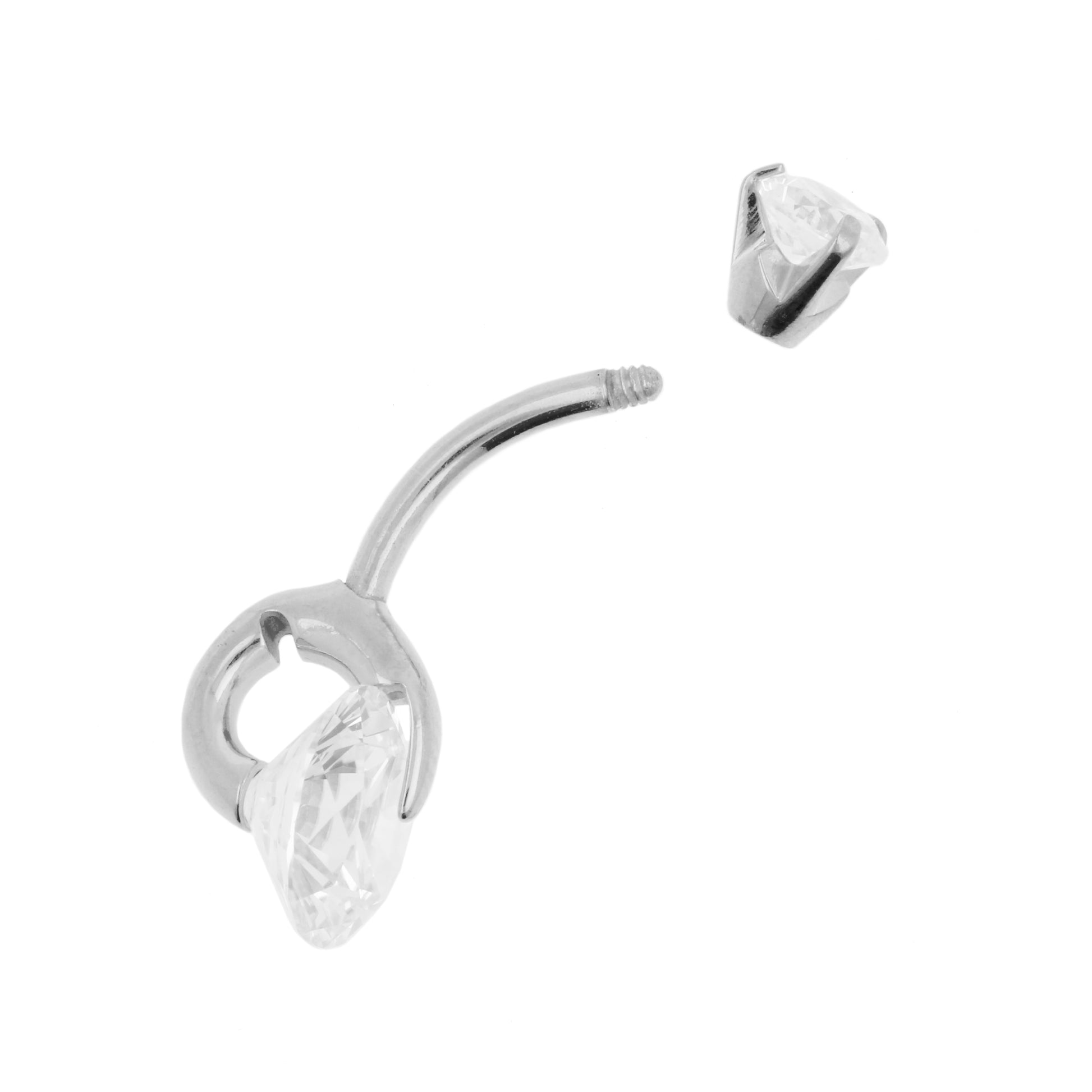 Elegant and refined — this belly bar features a clear cubic zirconia in a floating style for maximum visibility and sparkle. Crafted from premium surgical steel with a smooth, polished finish for long-lasting comfort and a refined look.