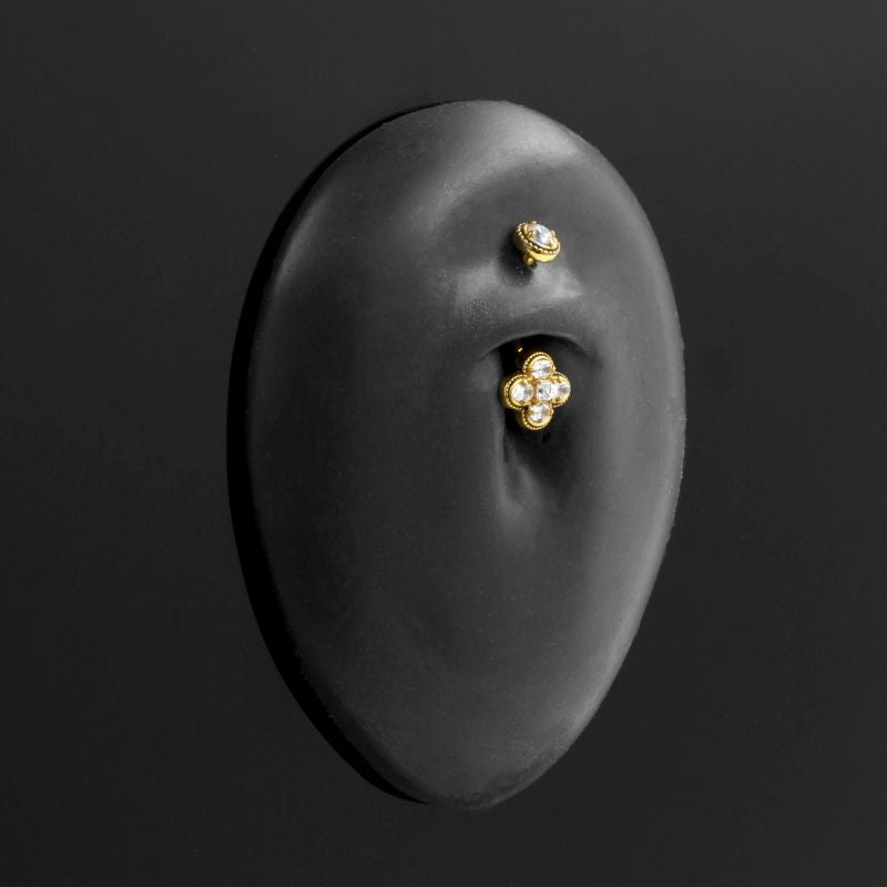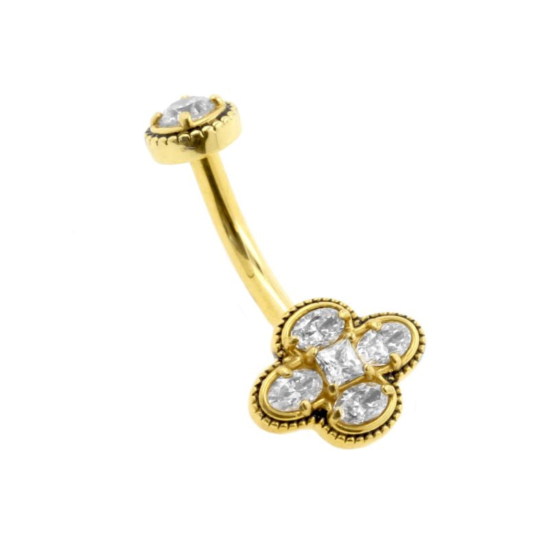 Surgical Steel Belly Ring Zirconia Flower Gold