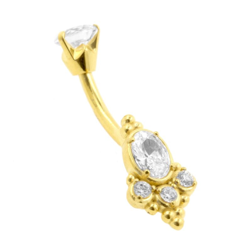 Surgical Steel Belly Ring Zirconia Oval Cluster Gold