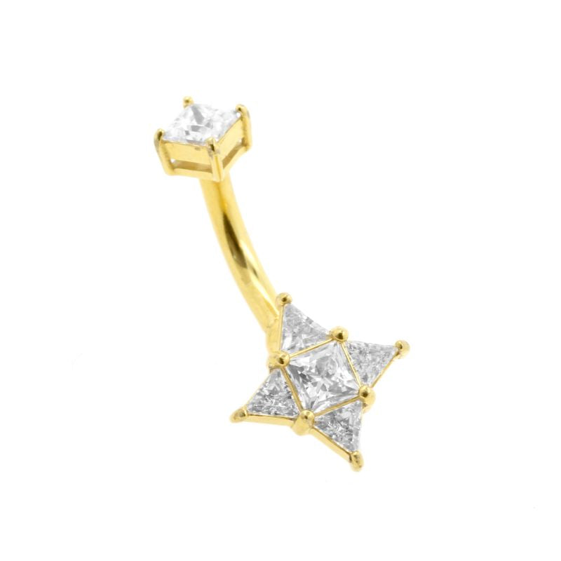 Surgical Steel Belly Ring Zirconia Star Gold