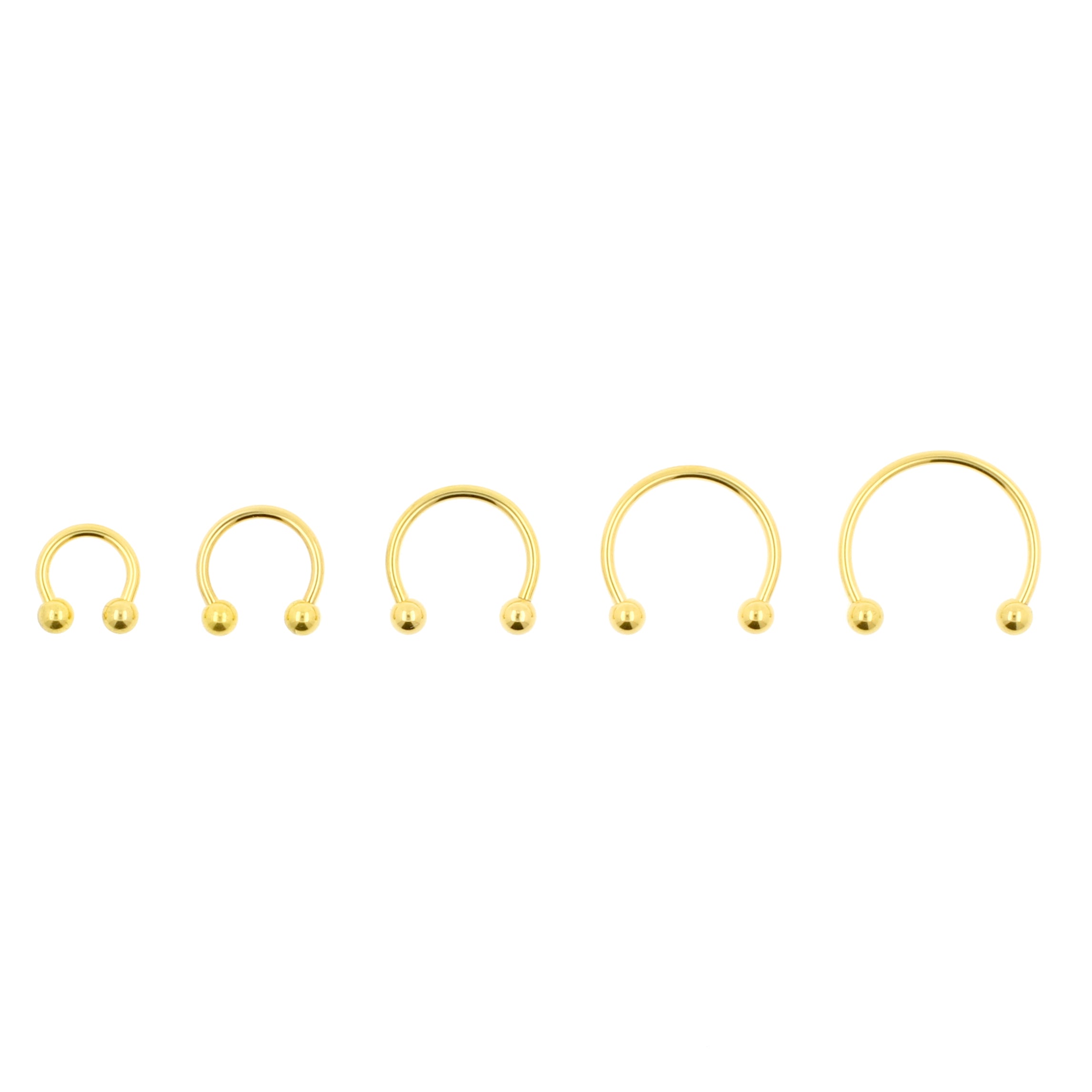 The essential basics, with a touch of real gold! These circular barbells measure 1,2 mm in thickness and are made of surgical 316L steel, with a P.V.D coating made of real 24K gold! The new coating techniques that are used to create this piece of jewelry ensure top notch quality and a wear-resistant, high sheen finish. Great to keep at hand whenever you need a replacement, or simply want to switch to another size. Our circular barbells are a perfect match with our 24k gold P.V.D. coated piercing jewelry range.