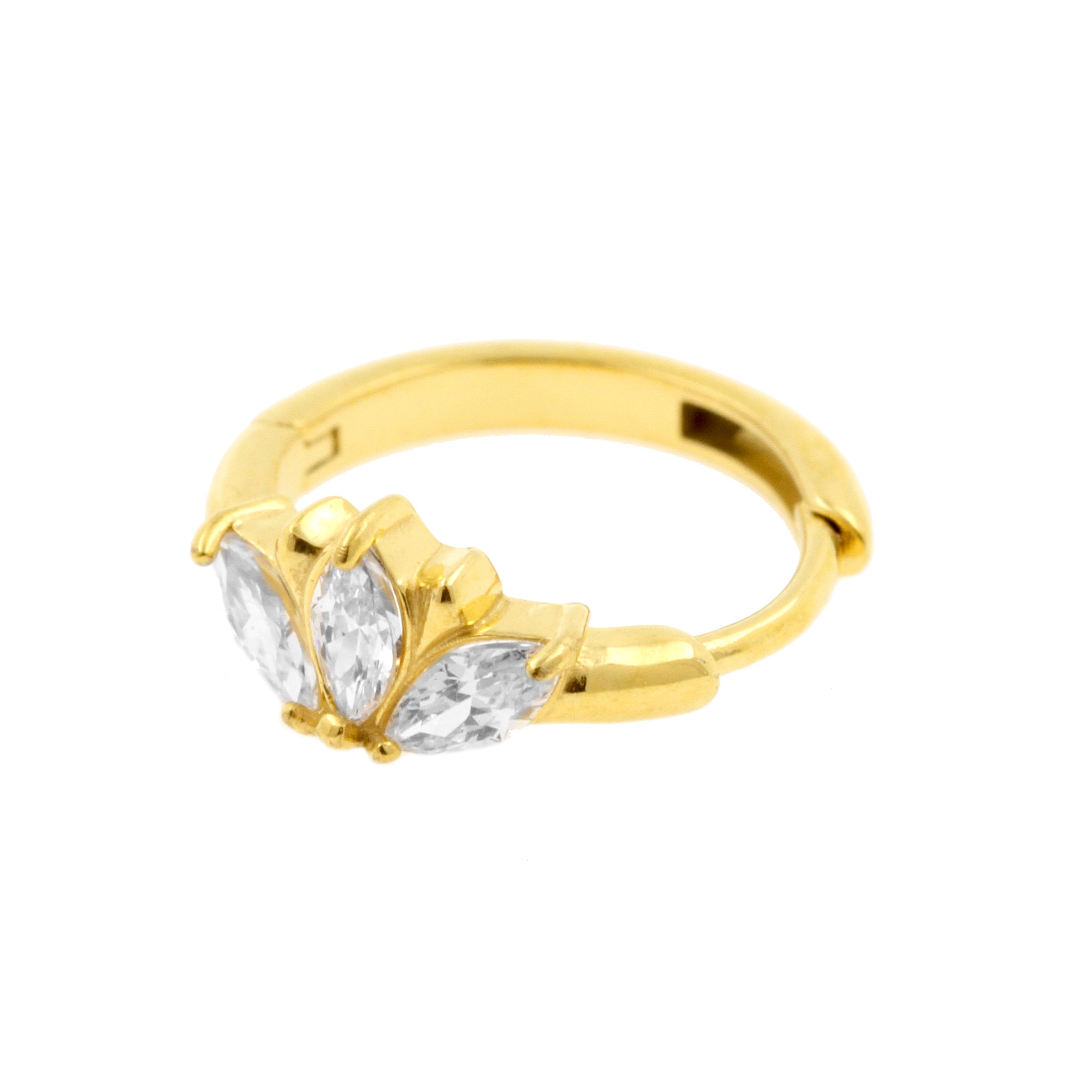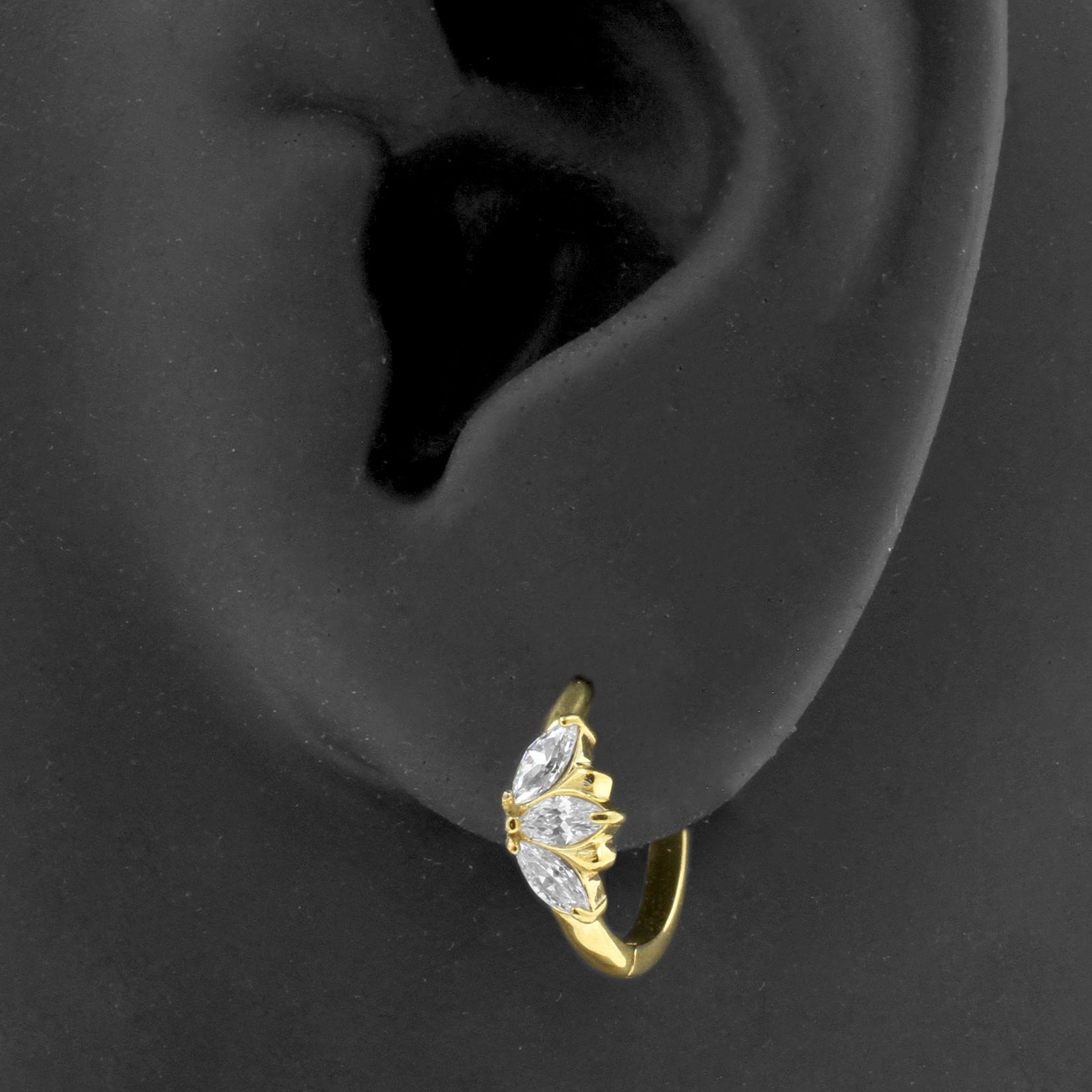 Surgical Steel Click Hoop Earrings With Marquise Zirconia Gold