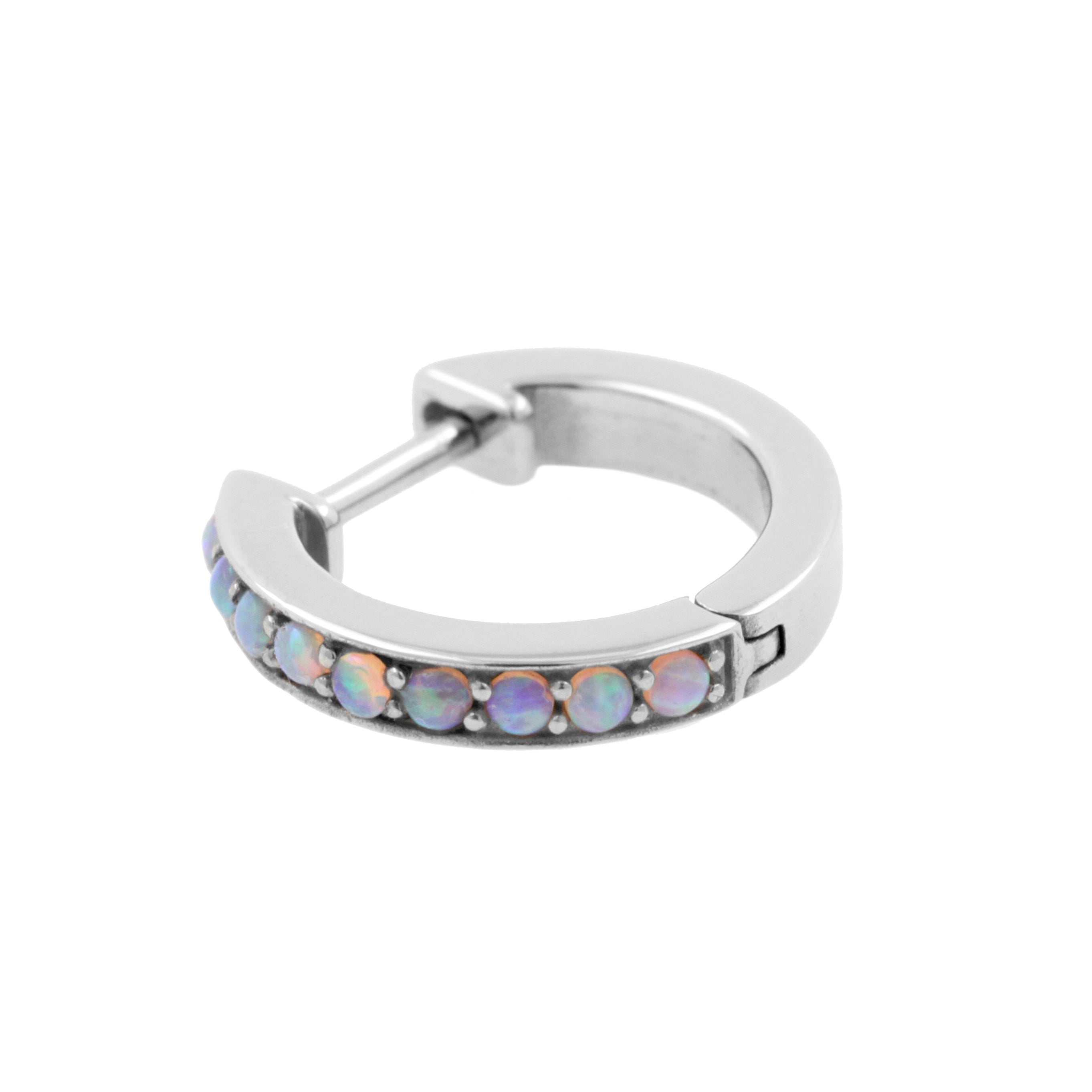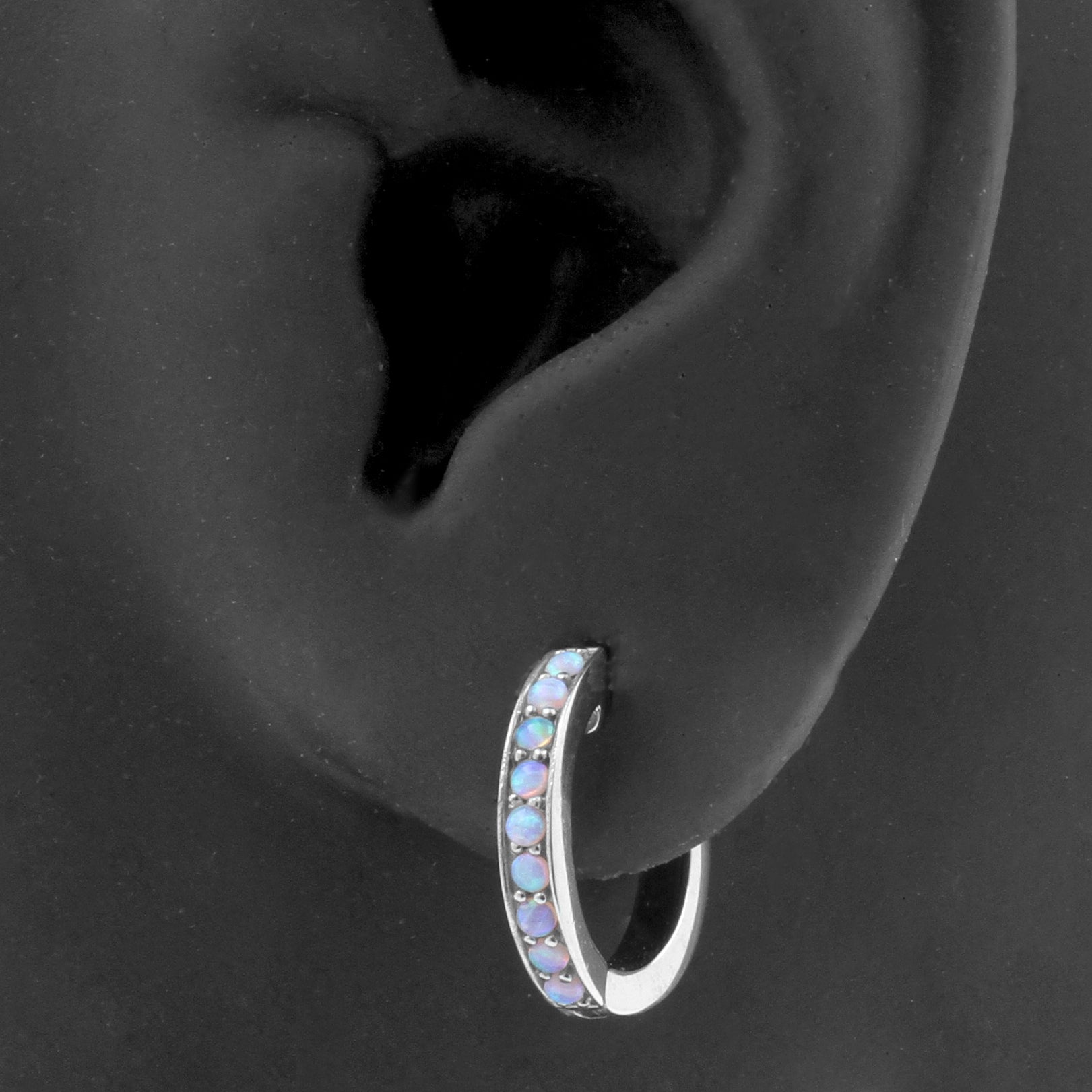 Turn your ears into real headturners with these amazing click hoop earrings! These lovely earrings are made of surgical steel and set with colorful, sythetic opal. The easy to use clicking mechanism ensures a secure fit. Trendy earrings that are a must have for your jewelry collection!
