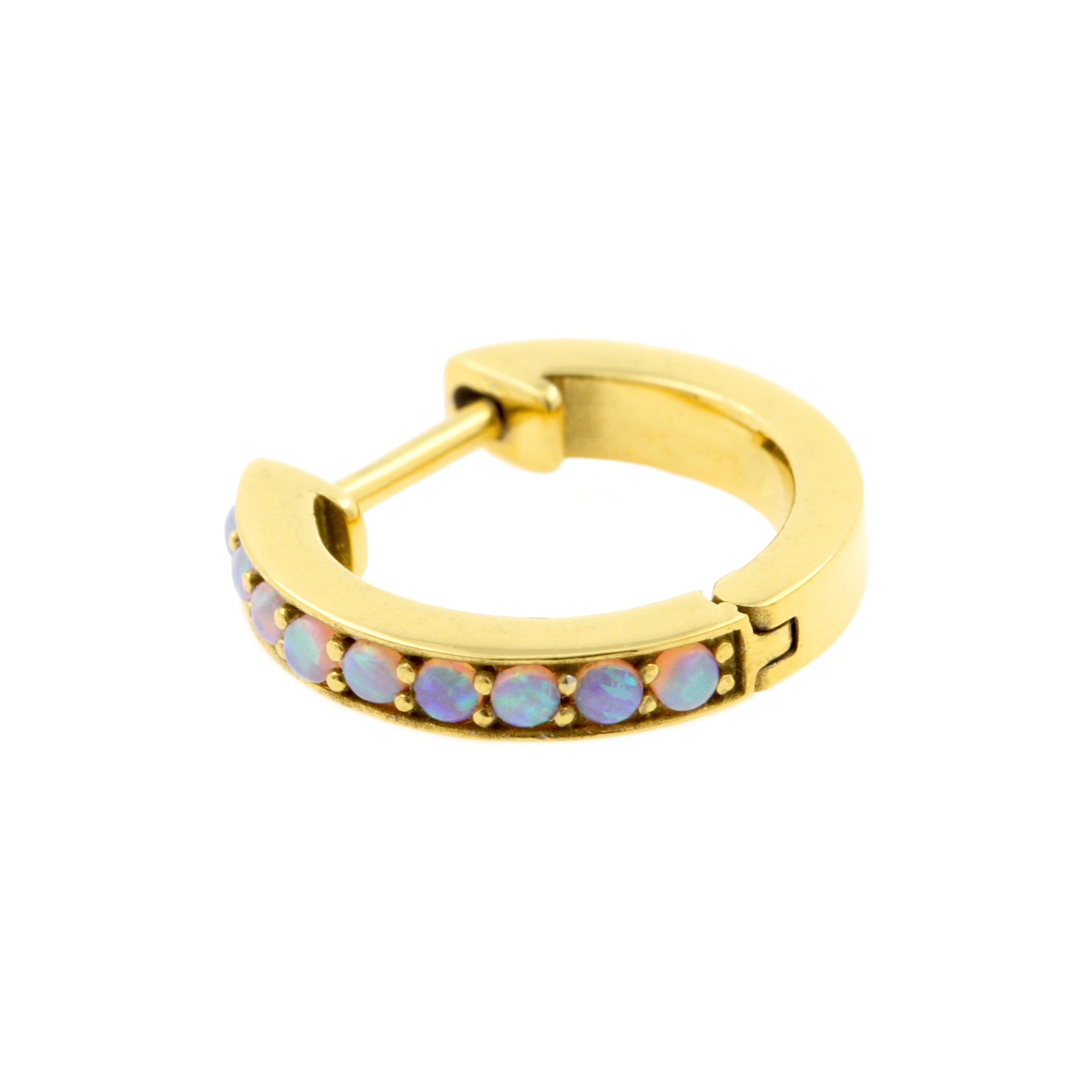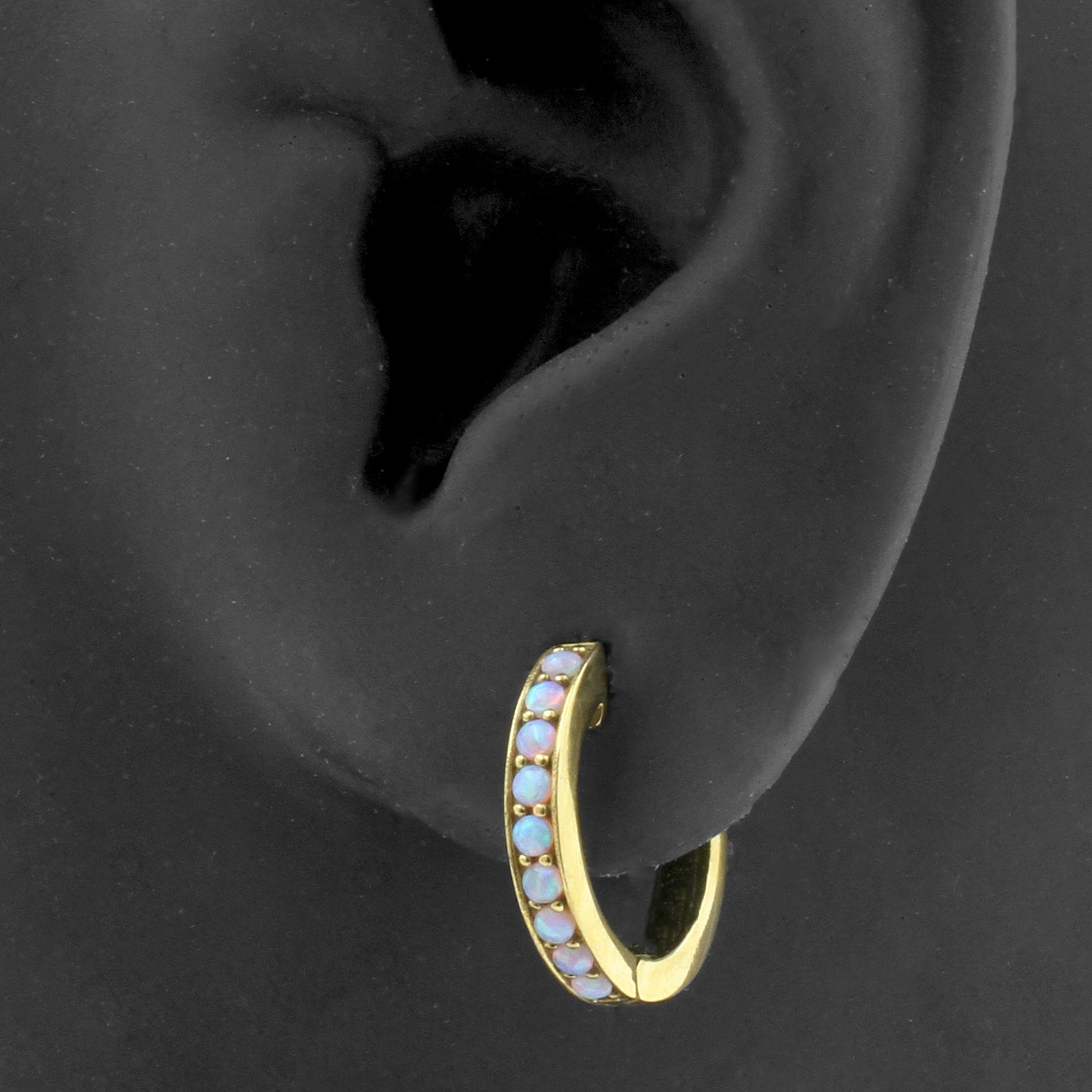 Turn your ears into real headturners with these amazing click hoop earrings! These lovely earrings are made of surgical steel and set with colorful, sythetic opal. The easy to use clicking mechanism ensures a secure fit.  Trendy earrings that are a must have for your jewelry collection!