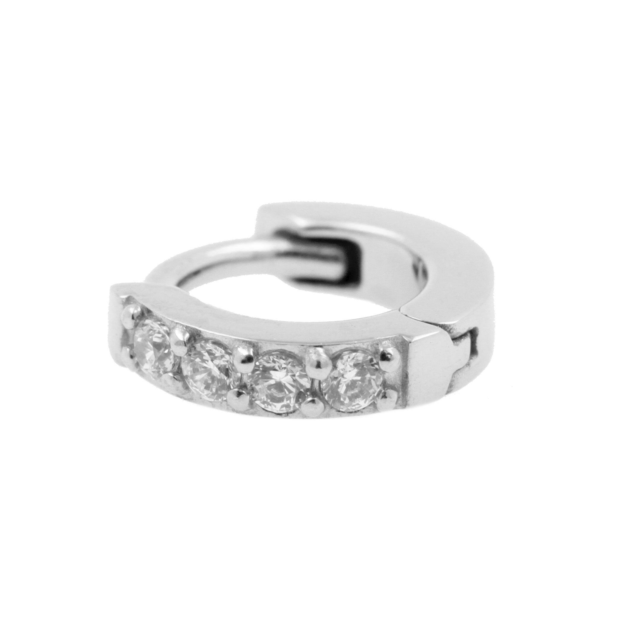Surgical Steel Click Hoop Earrings - Zirconia Silver