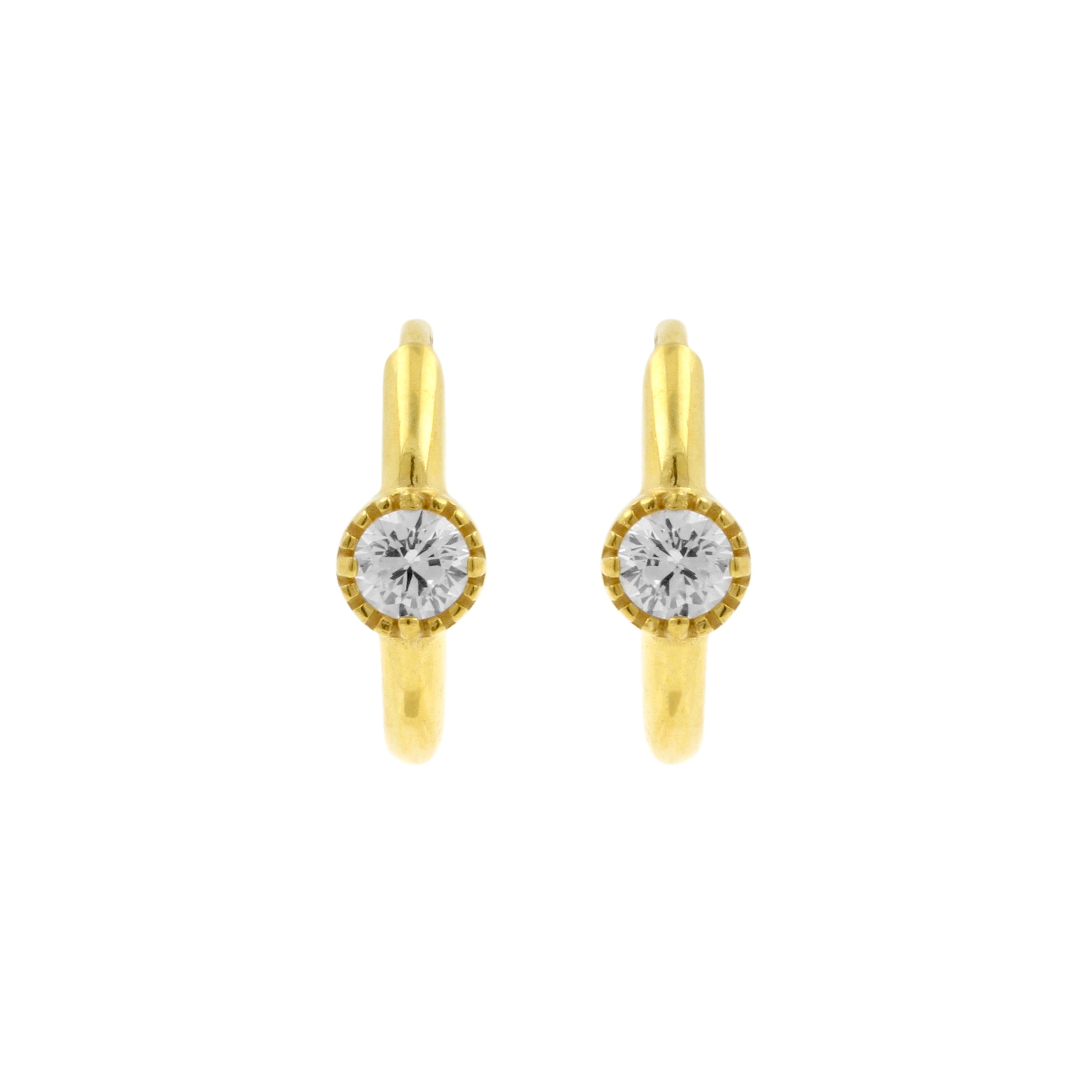 Surgical Steel Click Hoop Earrings - Zirconia Vintage - Gold