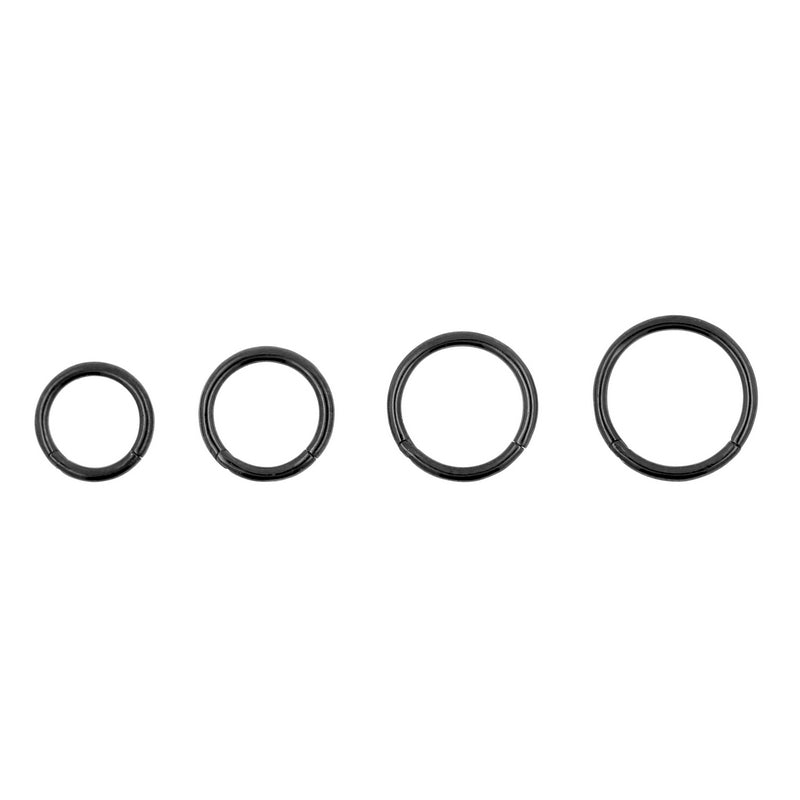 Pretty basics! The perfect piercing ring if you like the look of a smooth segment ring, but need something that's easy to use as well. The segment of this click ring is hinged and can easily be opened and closed. The closing mechanism is very easy to use and allows a smooth insertion into your piercings. Made of surgical steel and available in different colors and sizes!