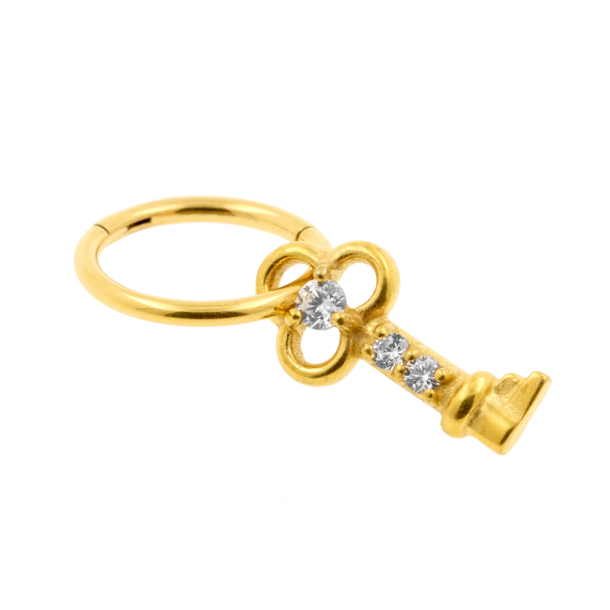 Surgical Steel Click Ring Charm - Key Gold