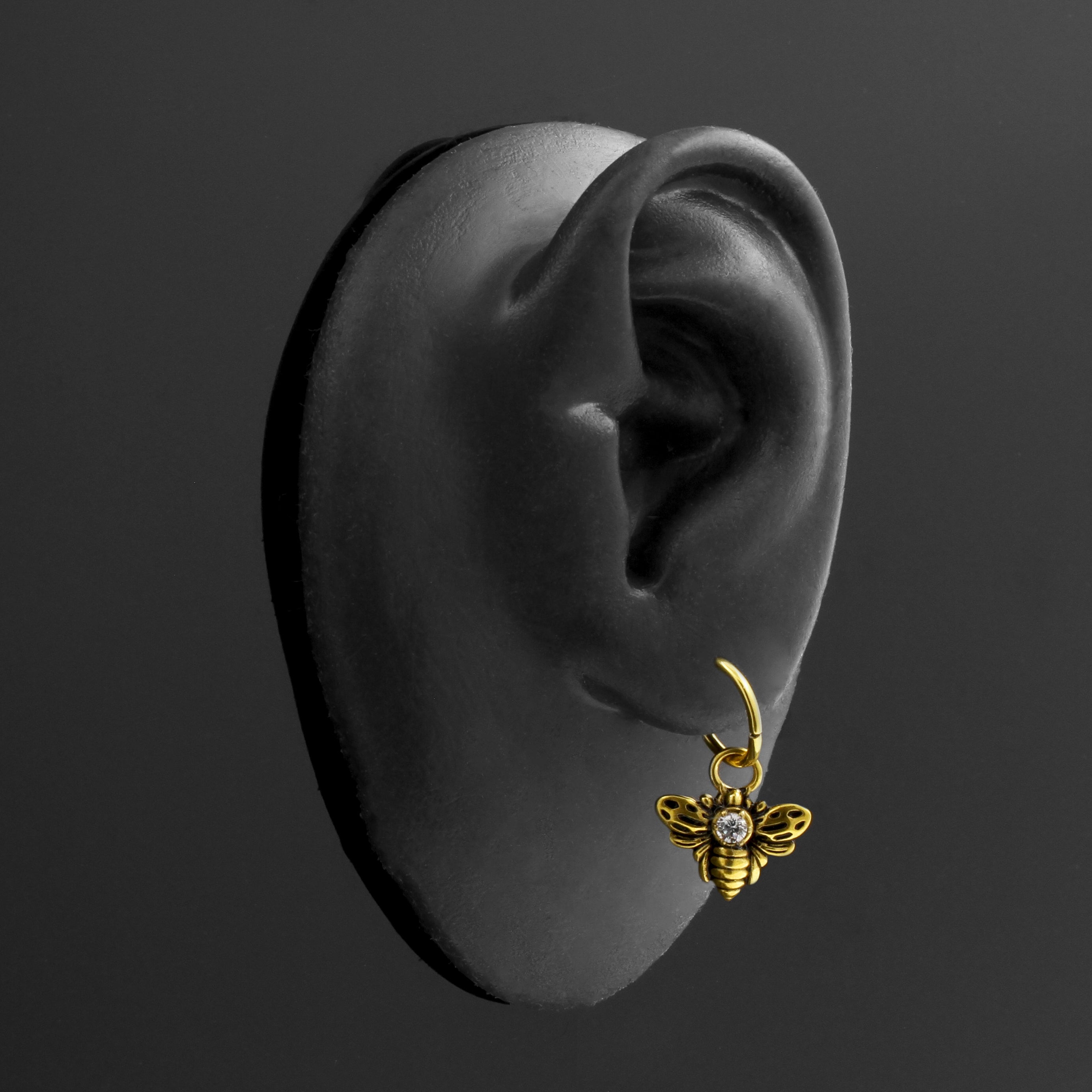 Surgical Steel Click Ring Charm - Zirconia Bee Gold