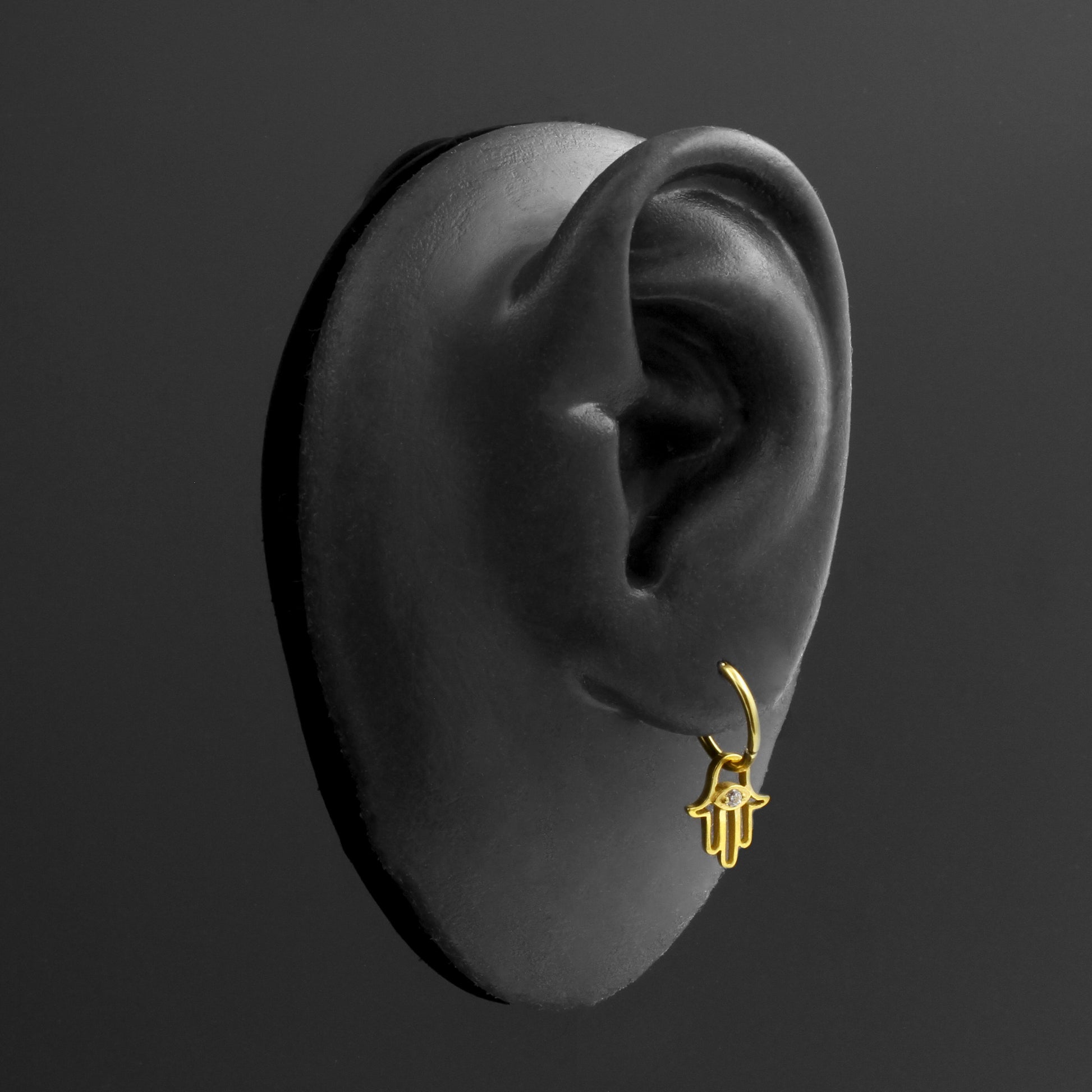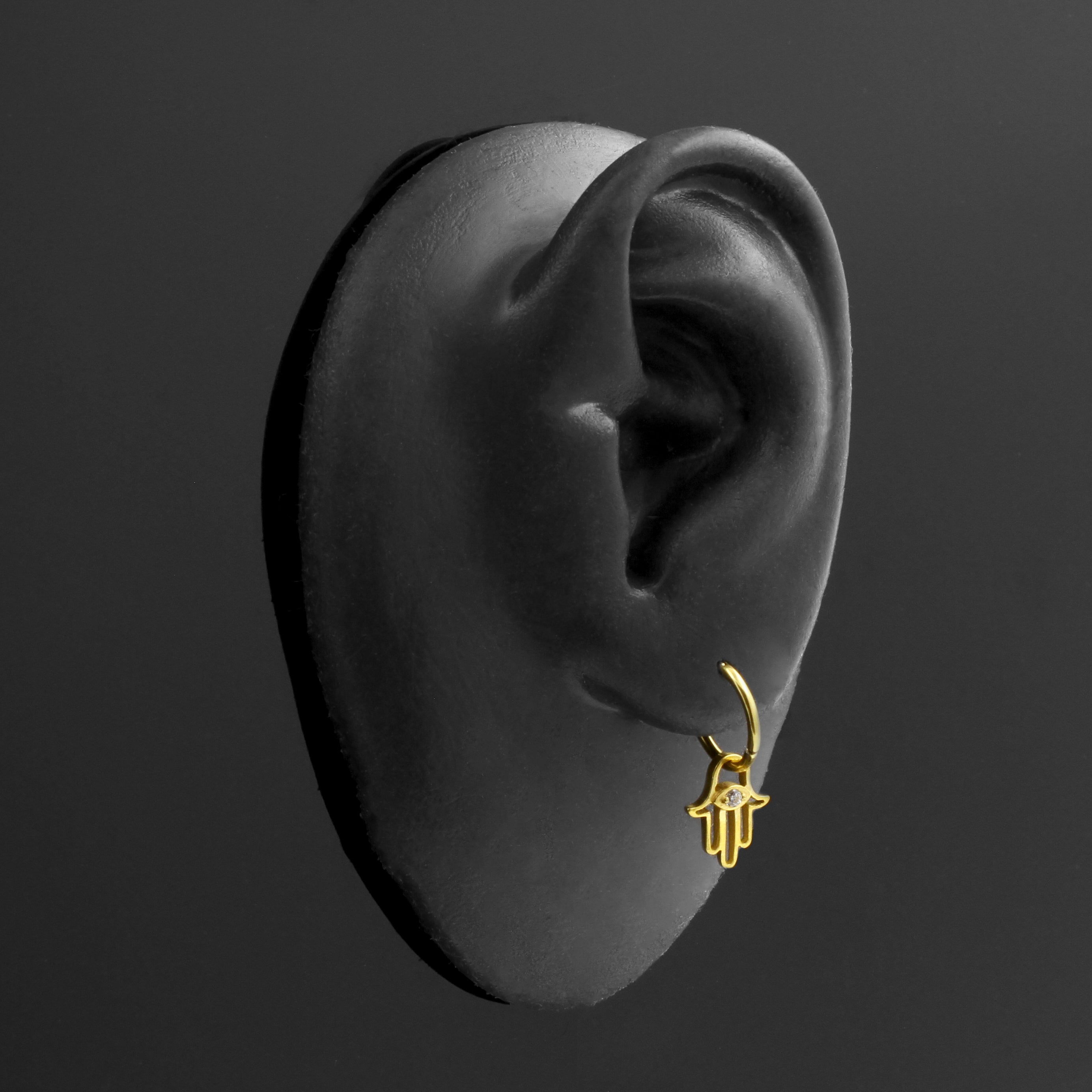 Surgical Steel Click Ring Charm - Zirconia Hand Of Fatima Gold