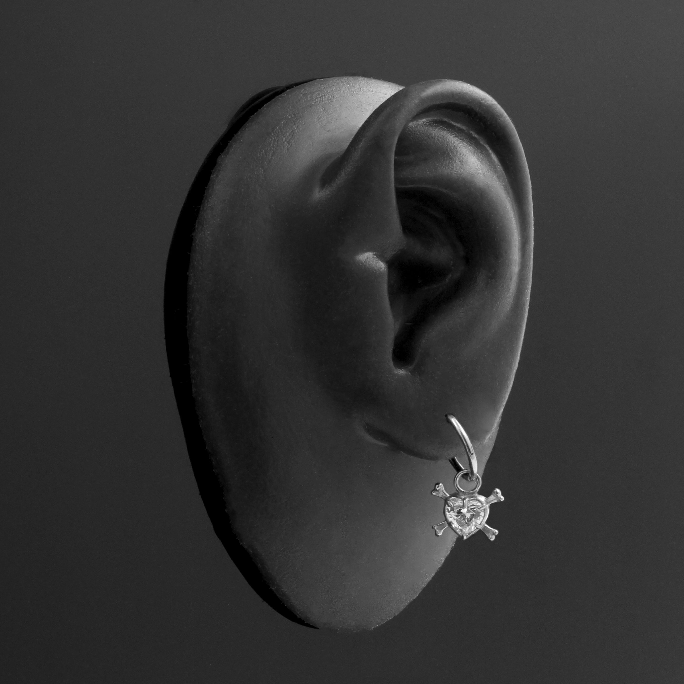 Surgical Steel Click Ring Charm - Zirconia Heart And Bones Silver