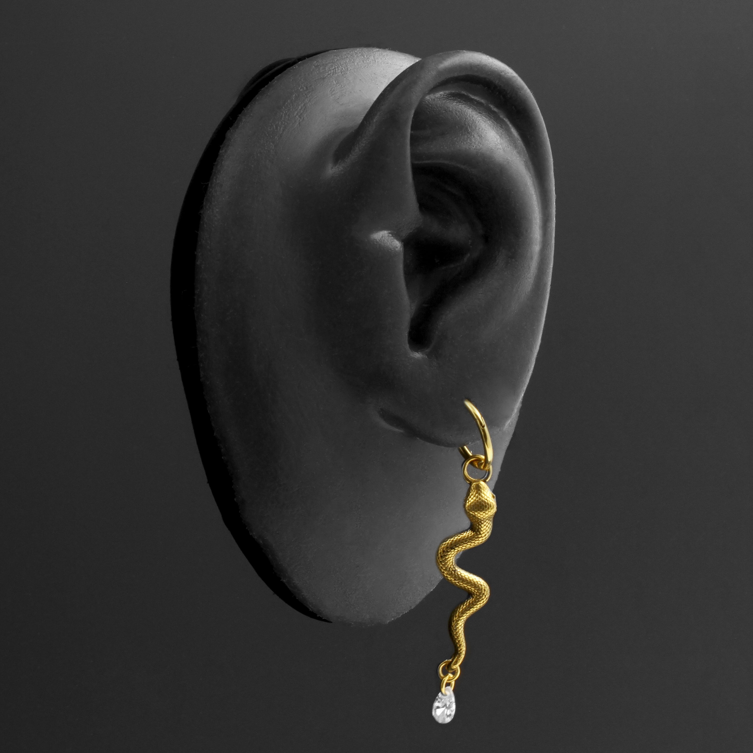Surgical Steel Click Ring Charm - Zirconia Snake Left Gold