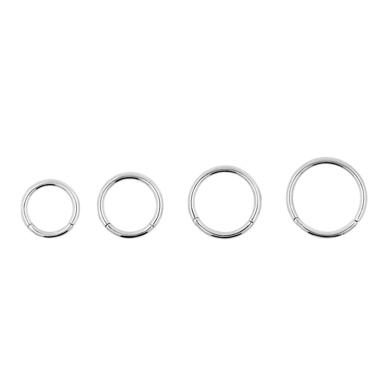 Pretty basics! The perfect piercing ring if you like the look of a smooth segment ring, but need something that's easy to use as well. The segment of this click ring is hinged and can easily be opened and closed. The closing mechanism is very easy to use and allows a smooth insertion into your piercings. Made of surgical steel and available in different colors and sizes!