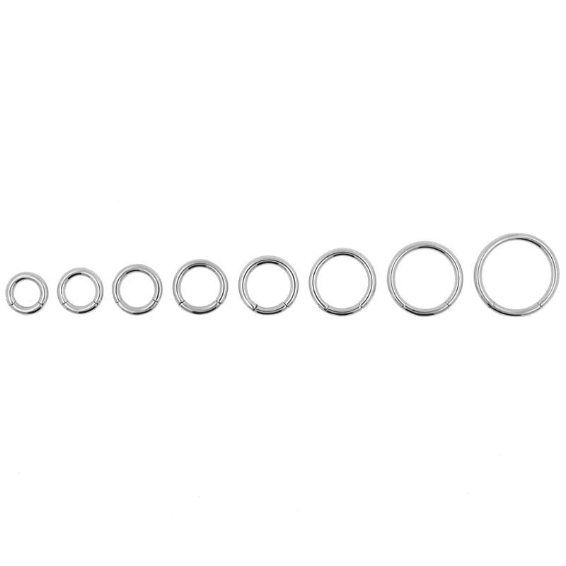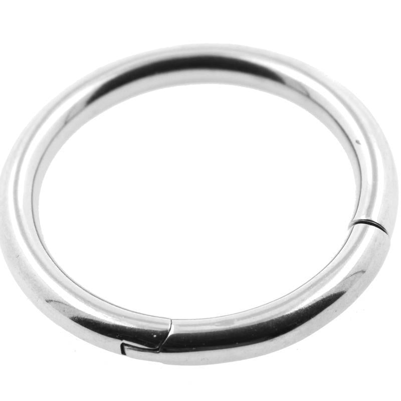 Pretty basics! The perfect piercing ring if you like the look of a smooth segment ring, but need something that's easy to use as well. The segment of this click ring is hinged and can easily be opened and closed. The closing mechanism is very easy to use and allows a smooth insertion into your piercings. Made of surgical steel and available in different colors and sizes!