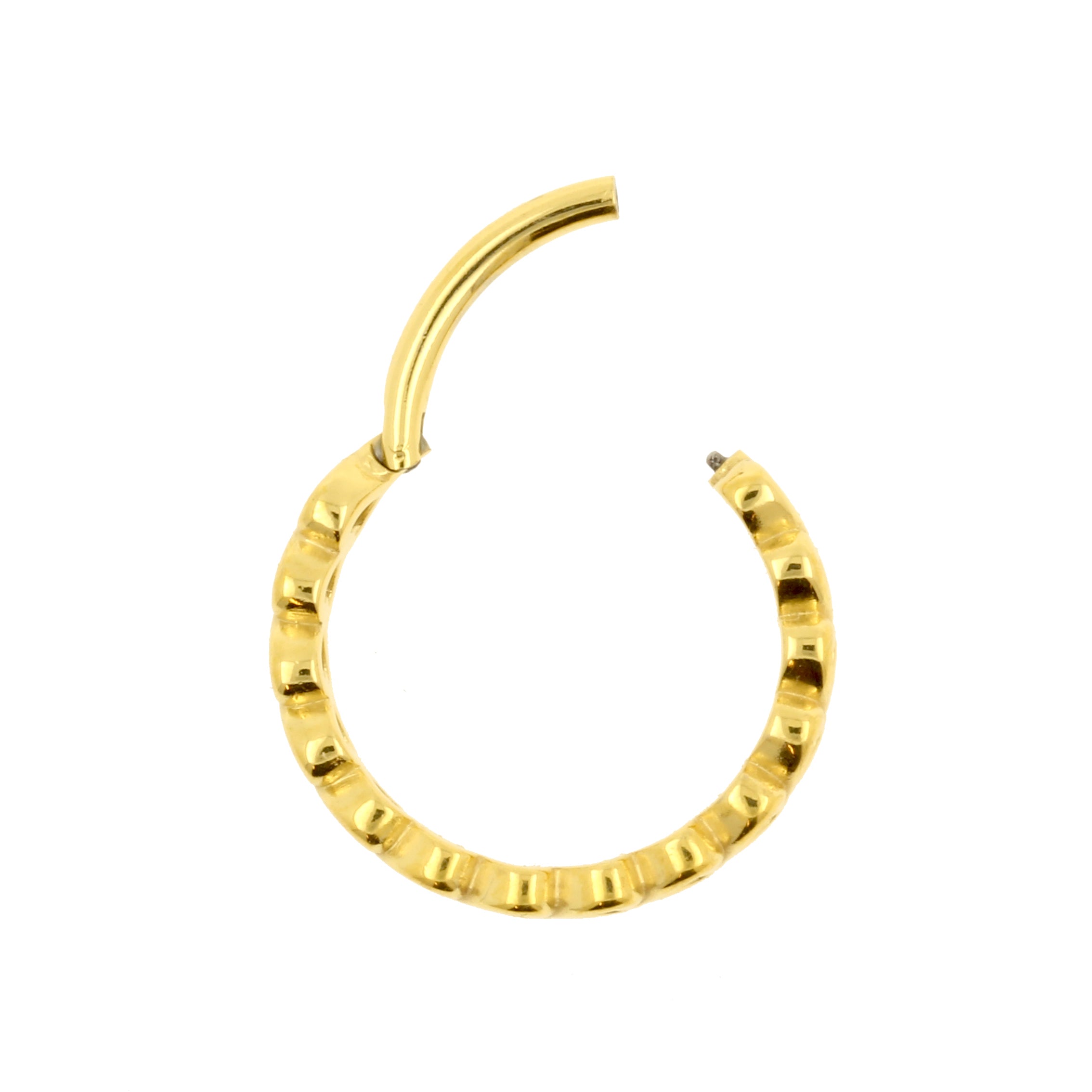 It all clicks with these amazing piercing click rings! Easy to use conch clicker made of surgical steel, decorated with a lovely pattern. Comfortable and very easy to use. The segment of this click ring is hinged and can easily be opened and closed, which allows a smooth insertion into your piercings. Perfect for all kinds of piercings, but especially for conch piercings.