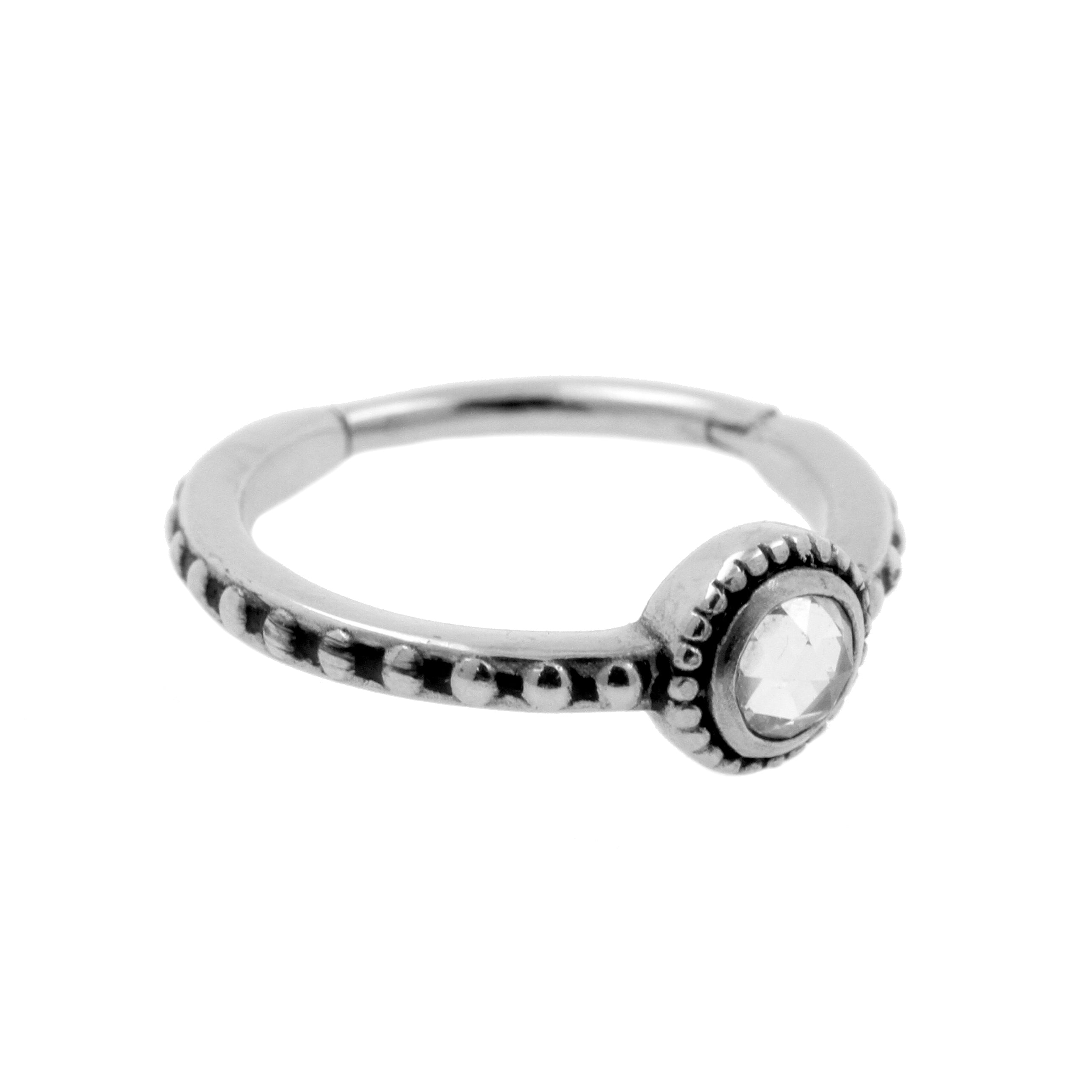 Surgical Steel Conch Clicker - Set With Rose Cut Zirconia Silver