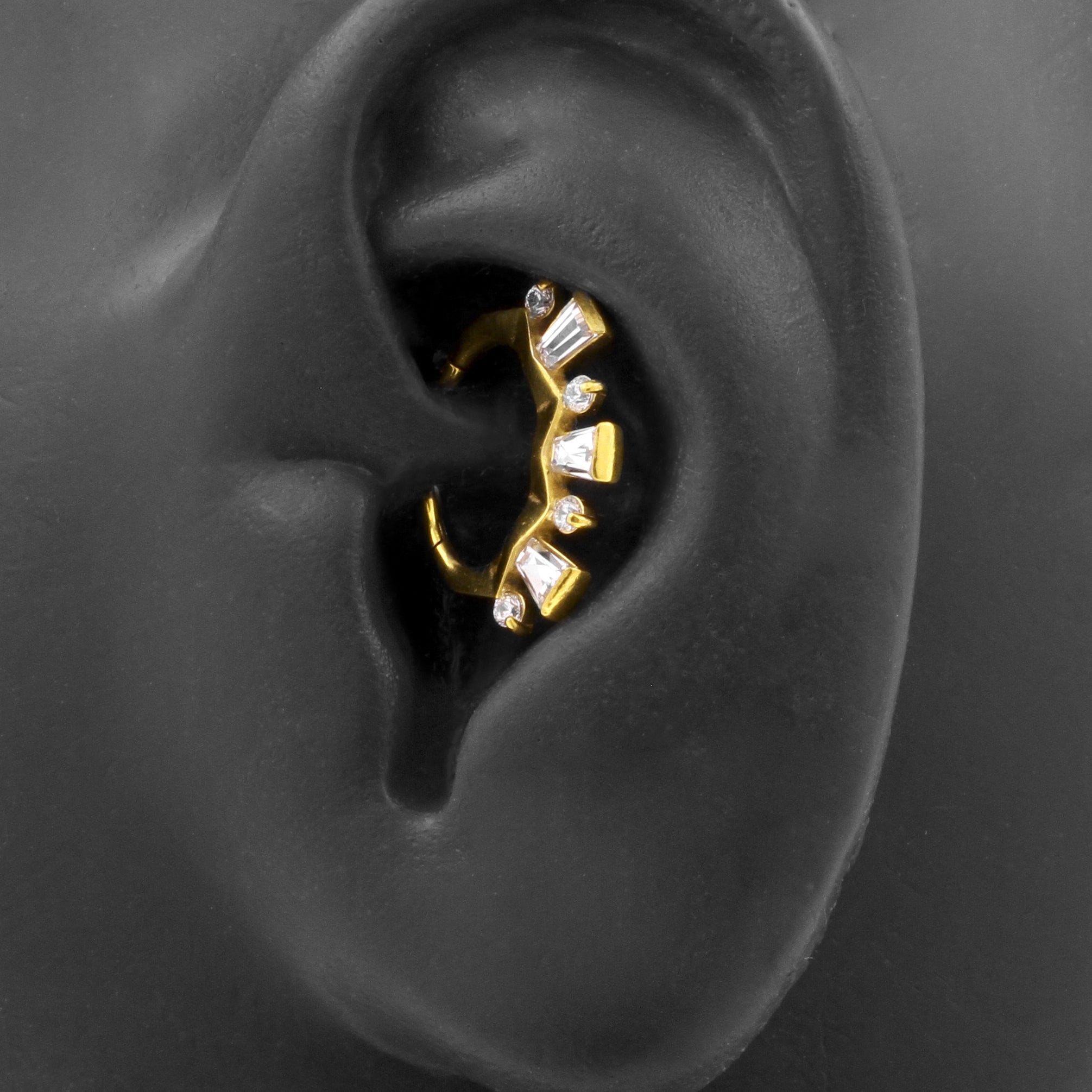 Surgical Steel Daith Clicker - Rectangle Crown Gold