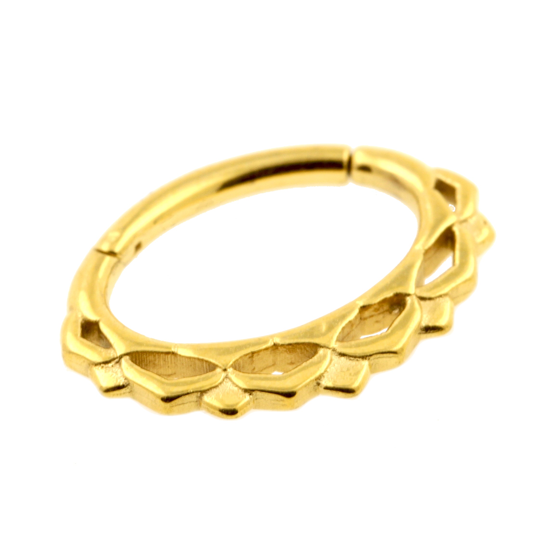 It all clicks with these amazing piercing click rings! Easy to use clik ring made of surgical steel with lovely decoration at the bottom of each ring. Comfortable and very easy to use. The segment of this click ring is hinged and can easily be opened and closed, which allows a smooth insertion into your piercings. The oval shape is perfect for all kinds of piercings, but especially for daith piercings.