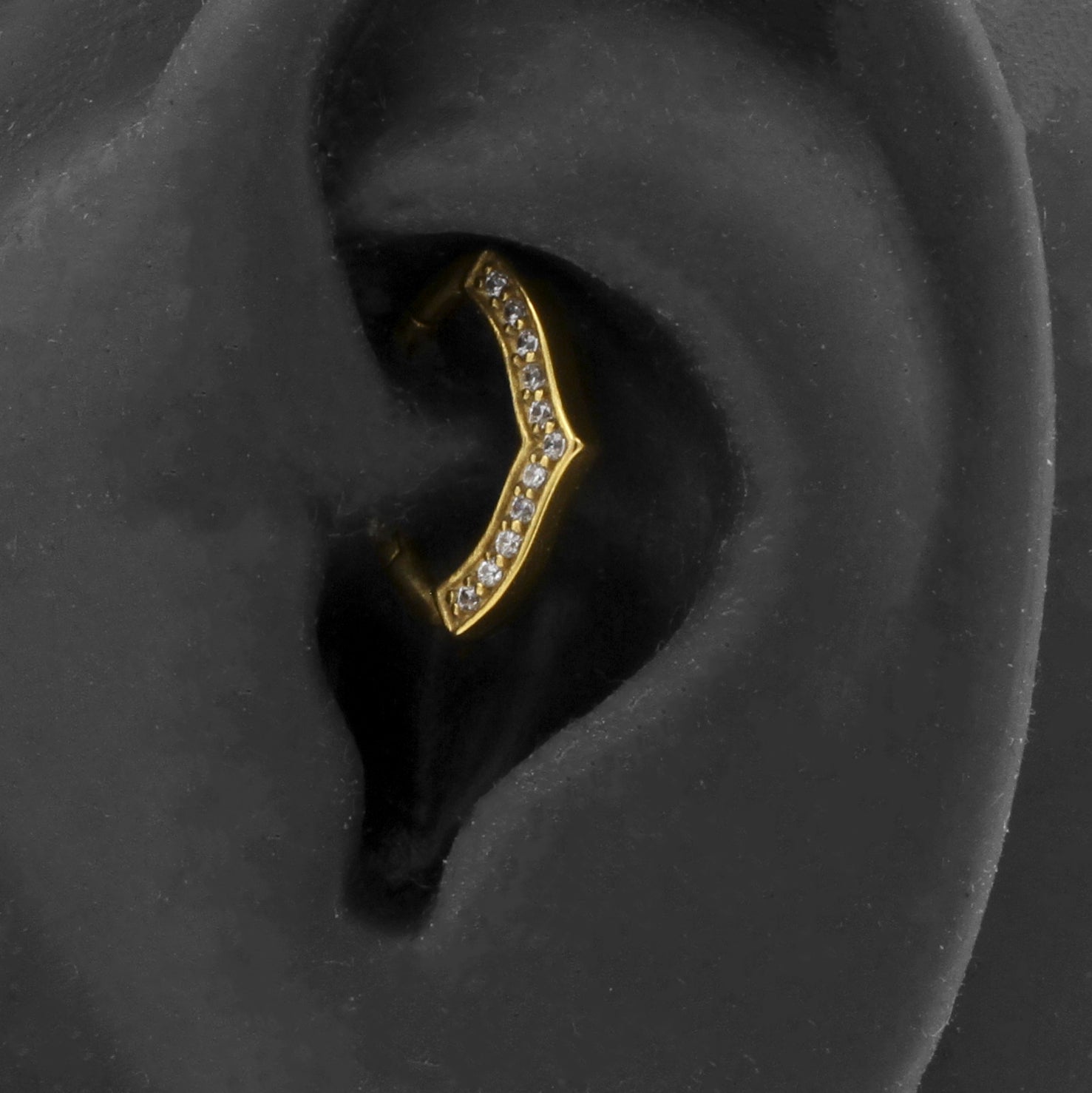 Surgical Steel Daith Clicker - Zirconia Drop Gold