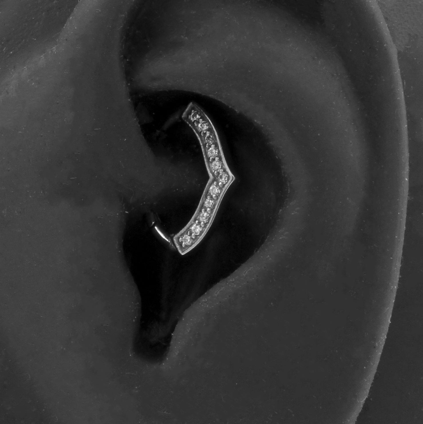 It all clicks with these amazing piercing click rings! Easy to use clik ring made of surgical steel with lovely zirconias at the bottom of each ring. Comfortable and very easy to use. The segment of this click ring is hinged and can easily be opened and closed, which allows a smooth insertion into your piercings. The oval shape is perfect for all kinds of piercings, but especially for daith piercings.