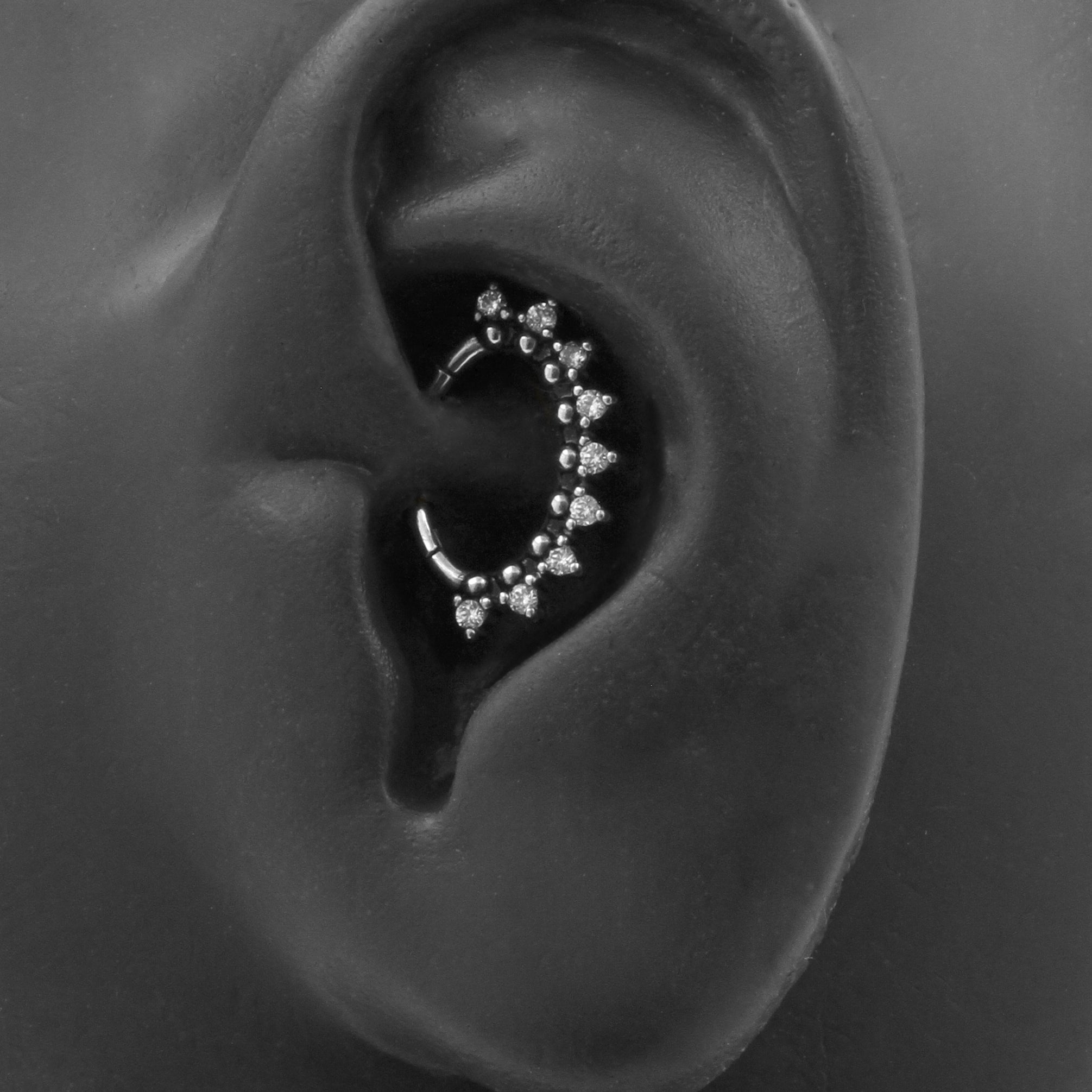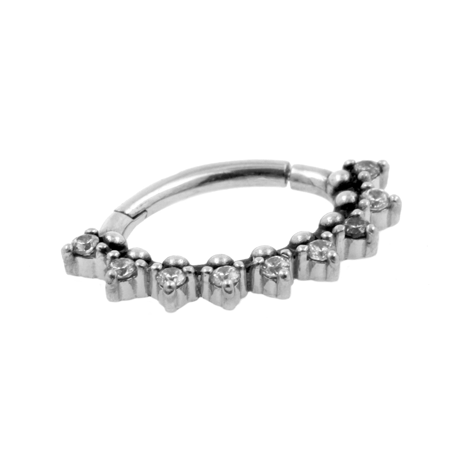 Surgical Steel Daith Clicker - Zirconia Vintage Dots Silver