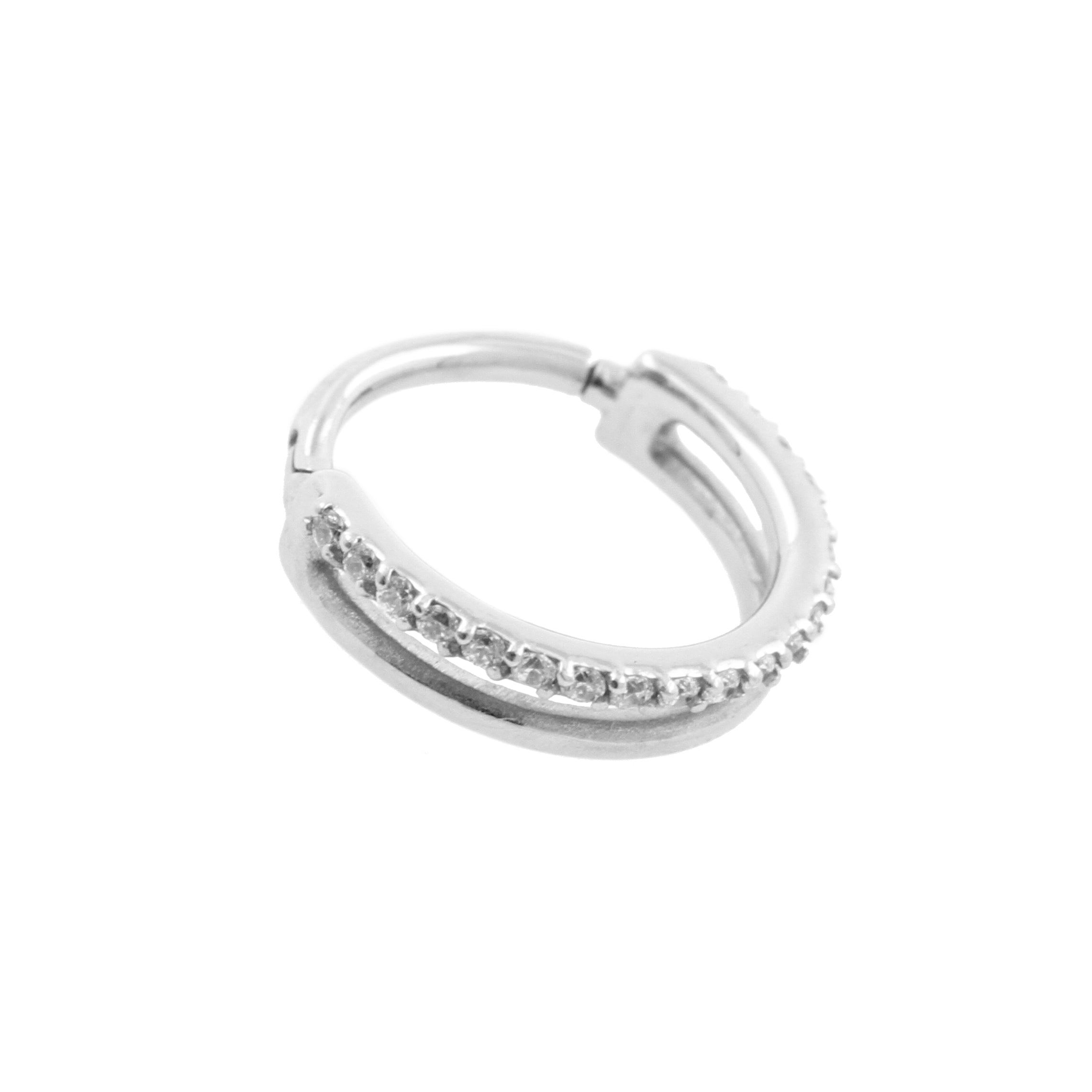 It all clicks with these amazing piercing click rings! Easy to use click ring made of surgical steel, set with beautiful, premium zirconias. Comfortable and very easy to use. The segment of this click ring is hinged and can easily be opened and closed, which allows a smooth insertion into your piercings. Perfect for all kinds of piercings, but especially for helix piercings.