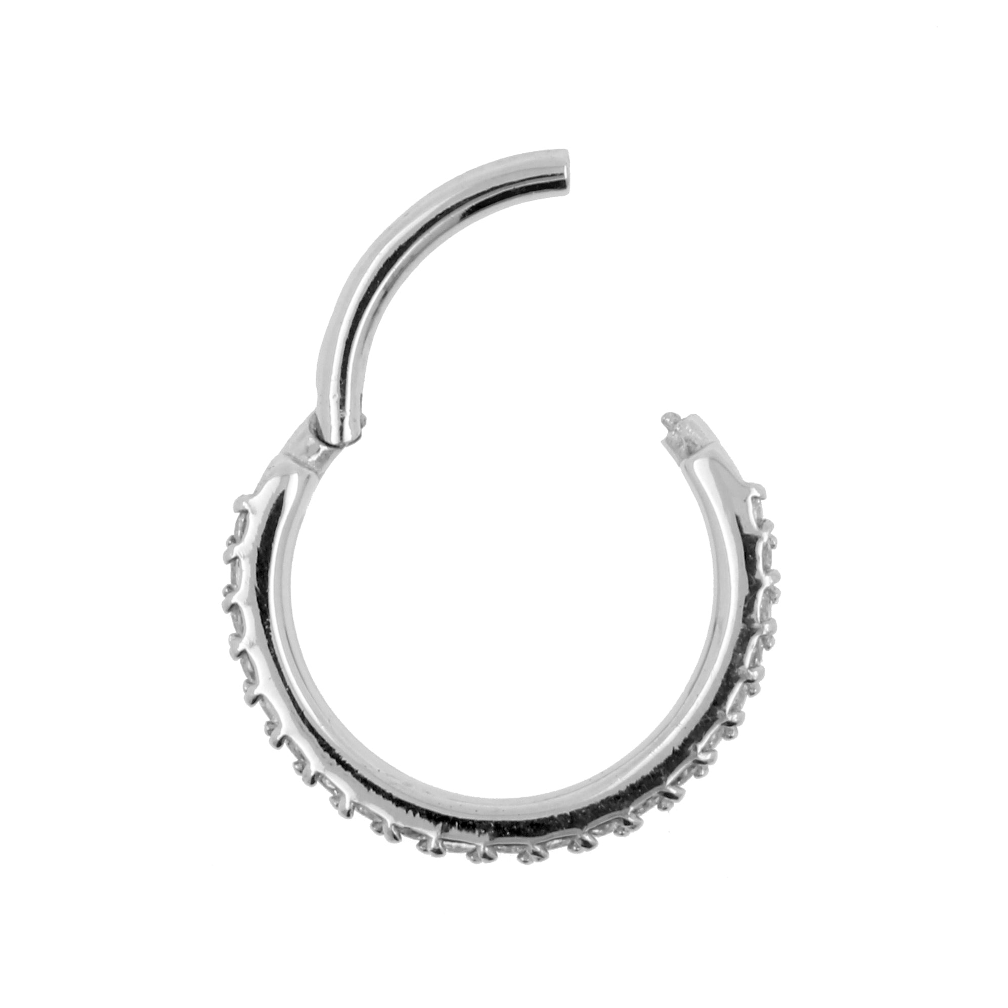It all clicks with these amazing piercing click rings! Easy to use click ring made of surgical steel, set with beautiful zirconias. Comfortable and very easy to use. The segment of this click ring is hinged and can easily be opened and closed, which allows a smooth insertion into your piercings. Perfect for all kinds of piercings, but especially for conch piercings.