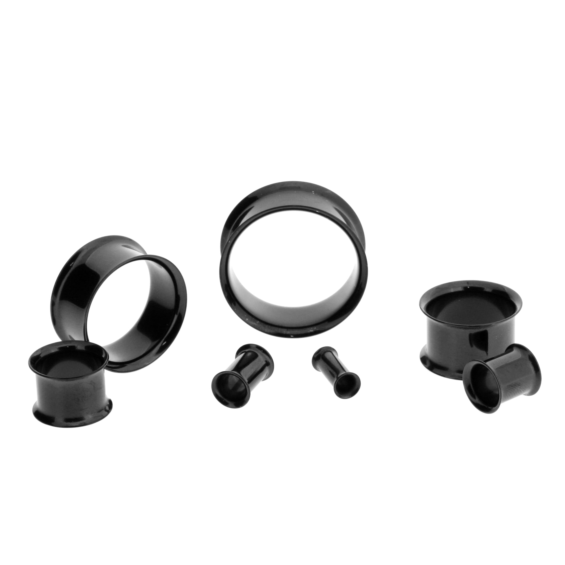 The essential basics for your stretched piercings! Basic, double flared eyelet made of black P.V.D. coated surgical steel. Double flared, so you won't be needing any o-rings to keep the jewelry in place.