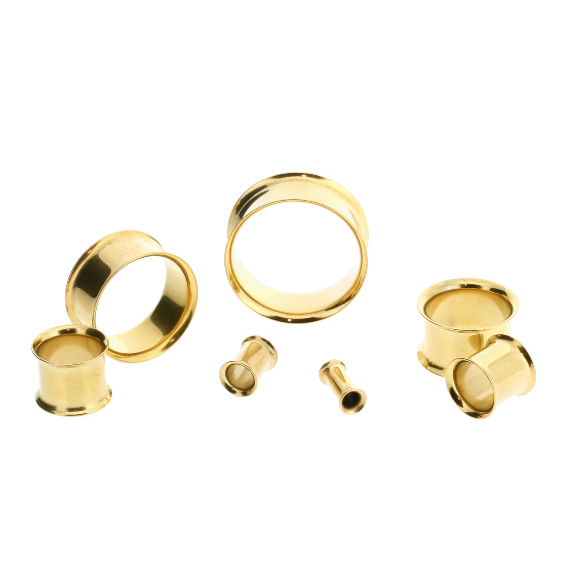 The essential basics for your stretched piercings! Basic, double flared eyelet made of gold P.V.D. coated surgical steel. Double flared, so you won't be needing any o-rings to keep the jewelry in place.