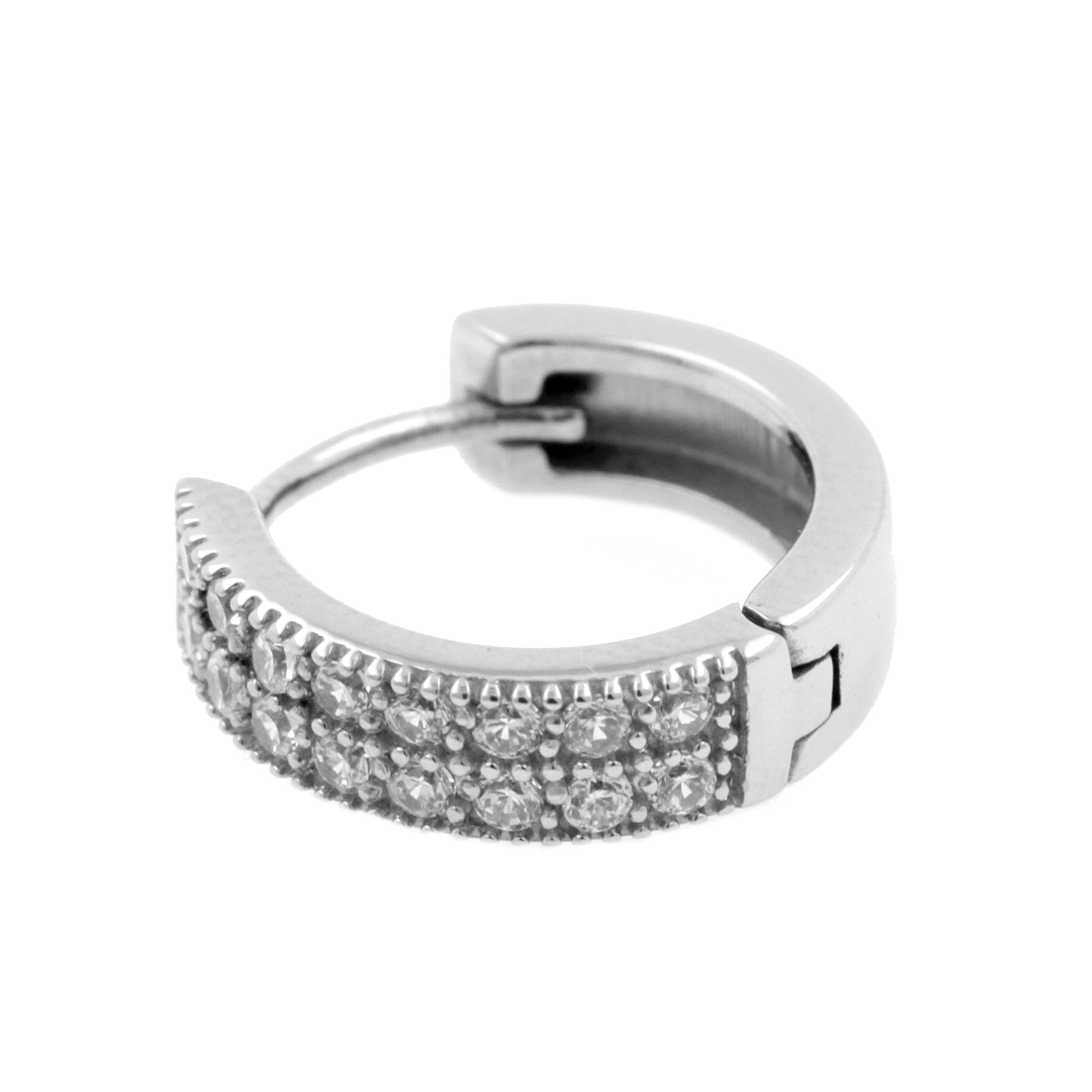 Surgical Steel Double Row Zirconia Click Hoop Earrings