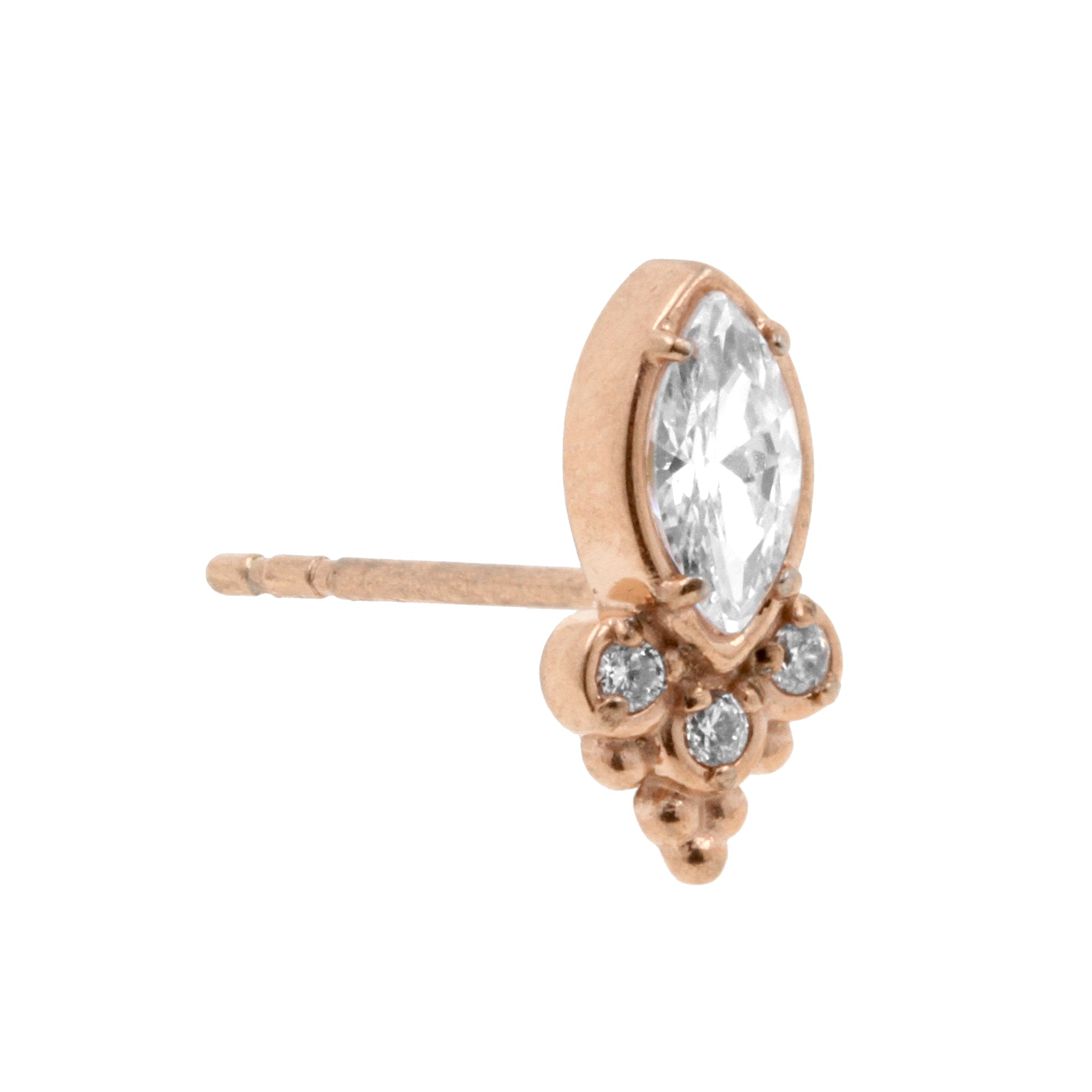 Surgical Steel Ear Studs With Marquise Zirconia And Trinity Dots Rose Gold