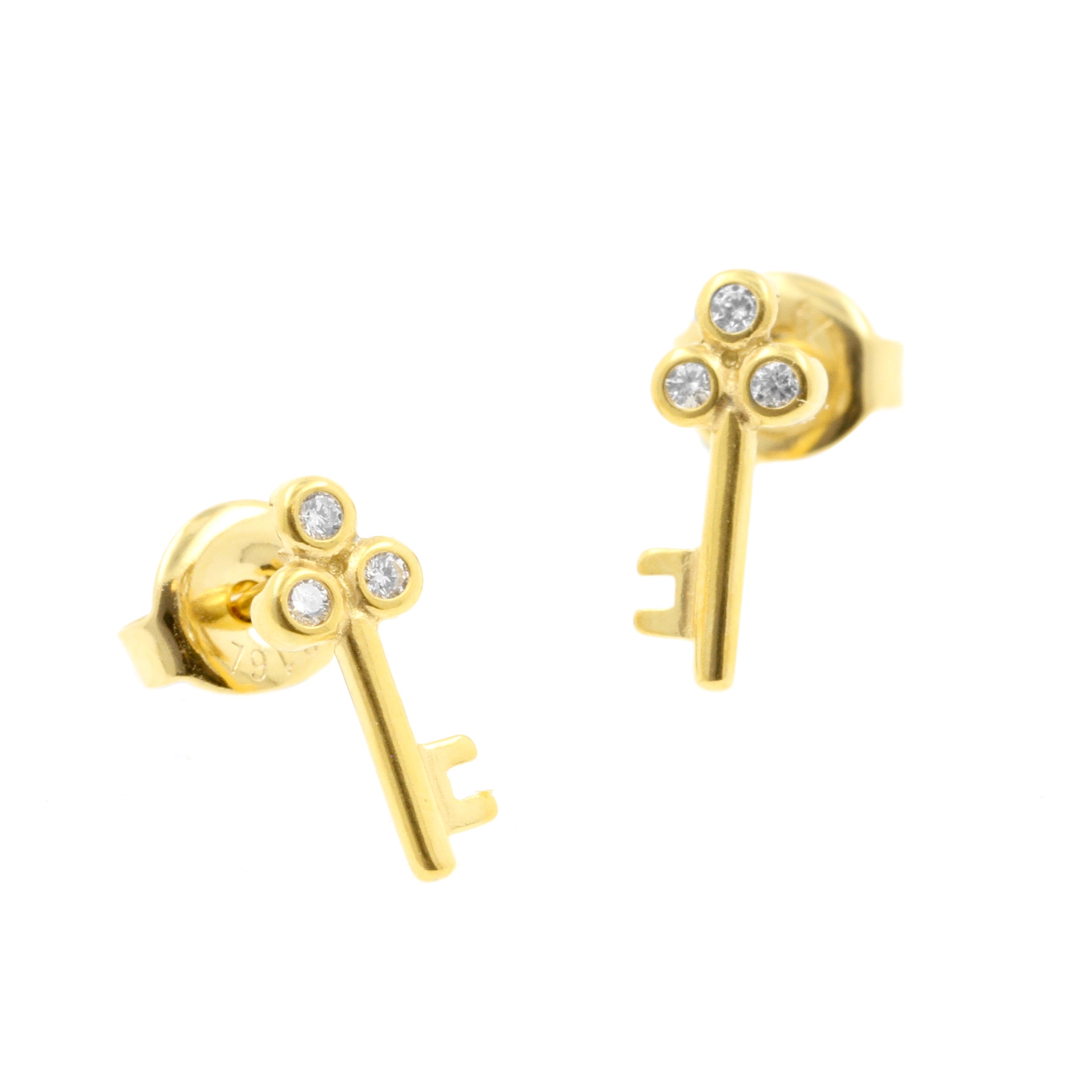 Surgical Steel Ear Studs - Zirconia Key Gold