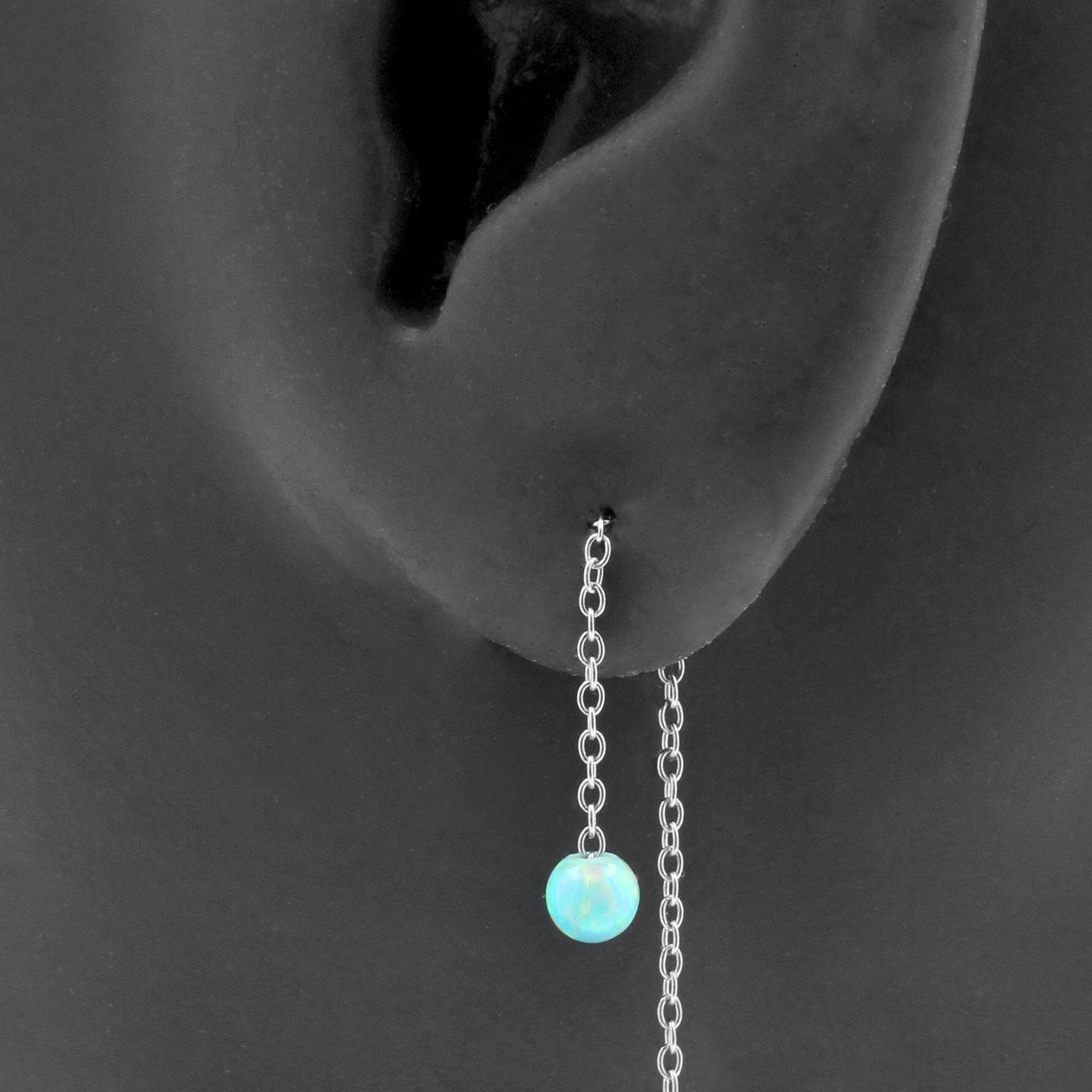 Surgical Steel Ear Threader Opal Ball Light Green Opal
