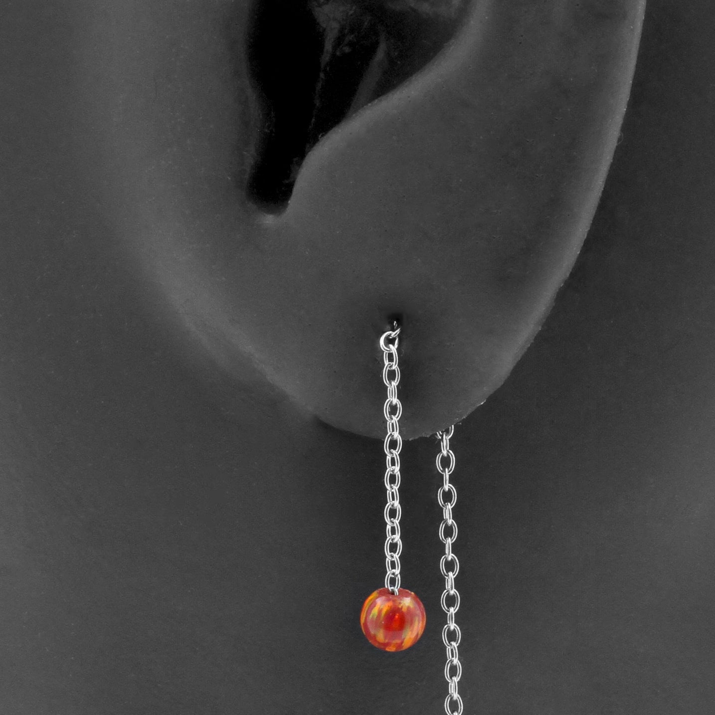 Surgical Steel Ear Threader Opal Ball Red Opal