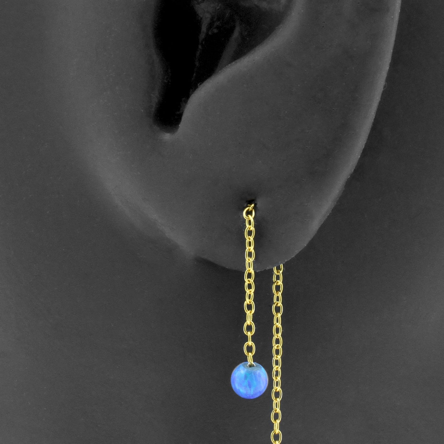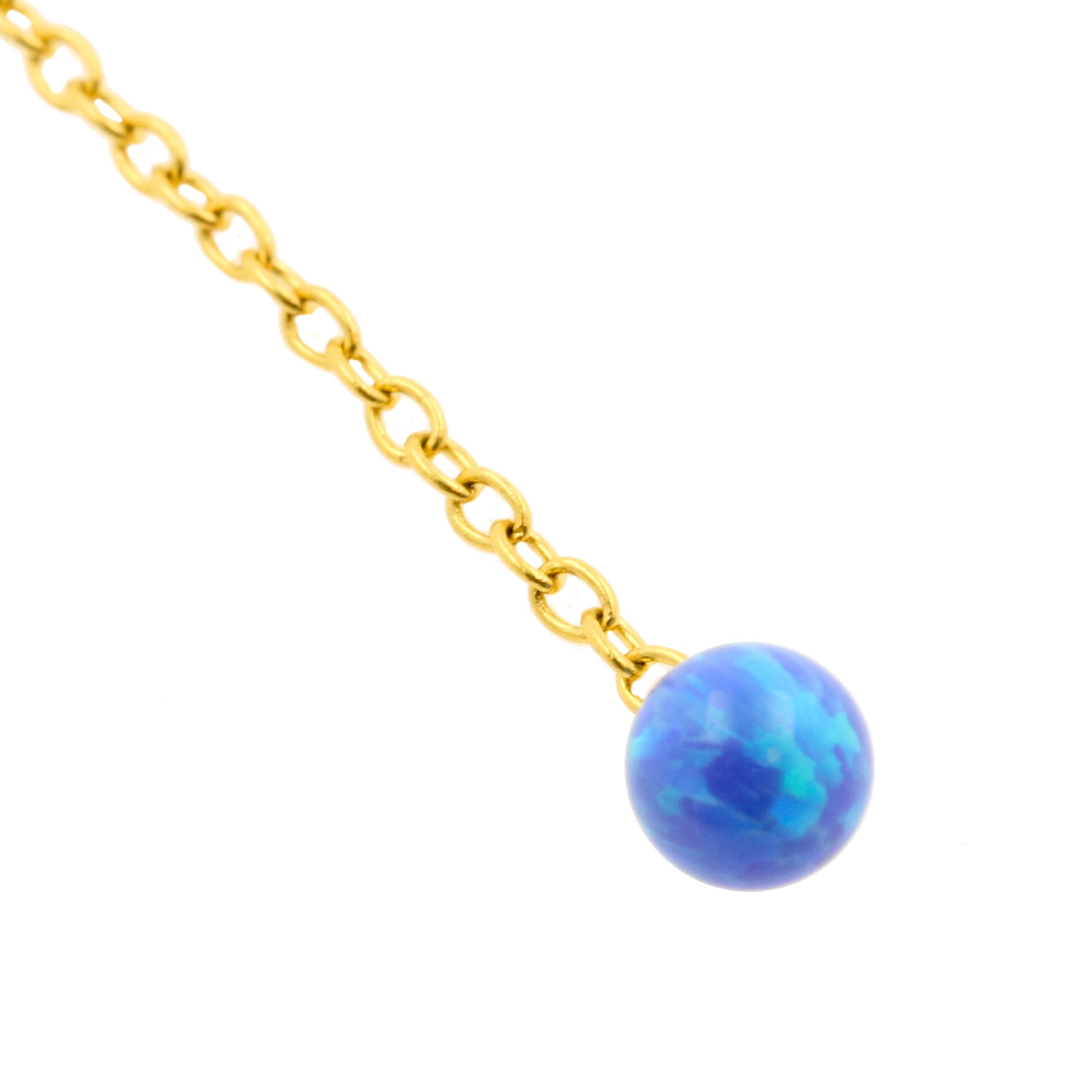 Surgical Steel Ear Threader Opal Ball Sapphire Blue Opal