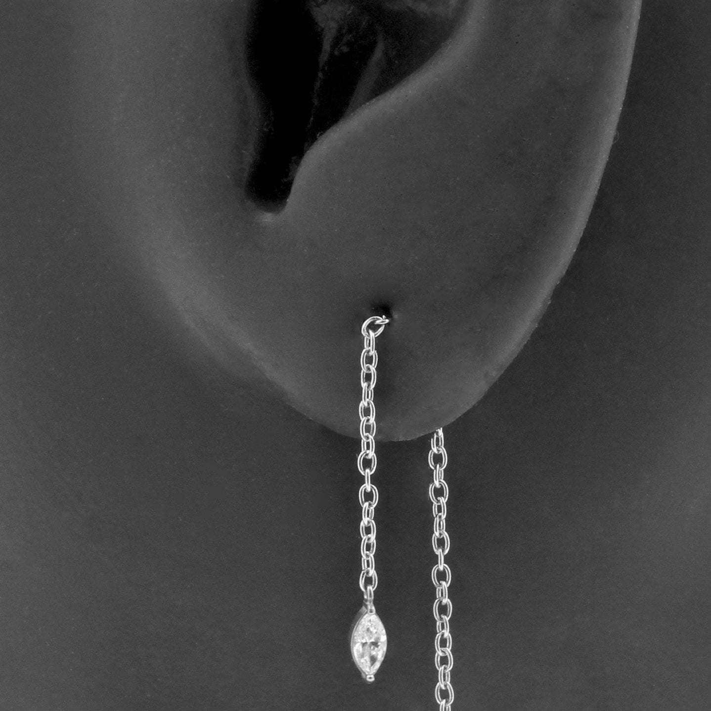 Surgical Steel Ear Threader - Zirconia Marquise Silver