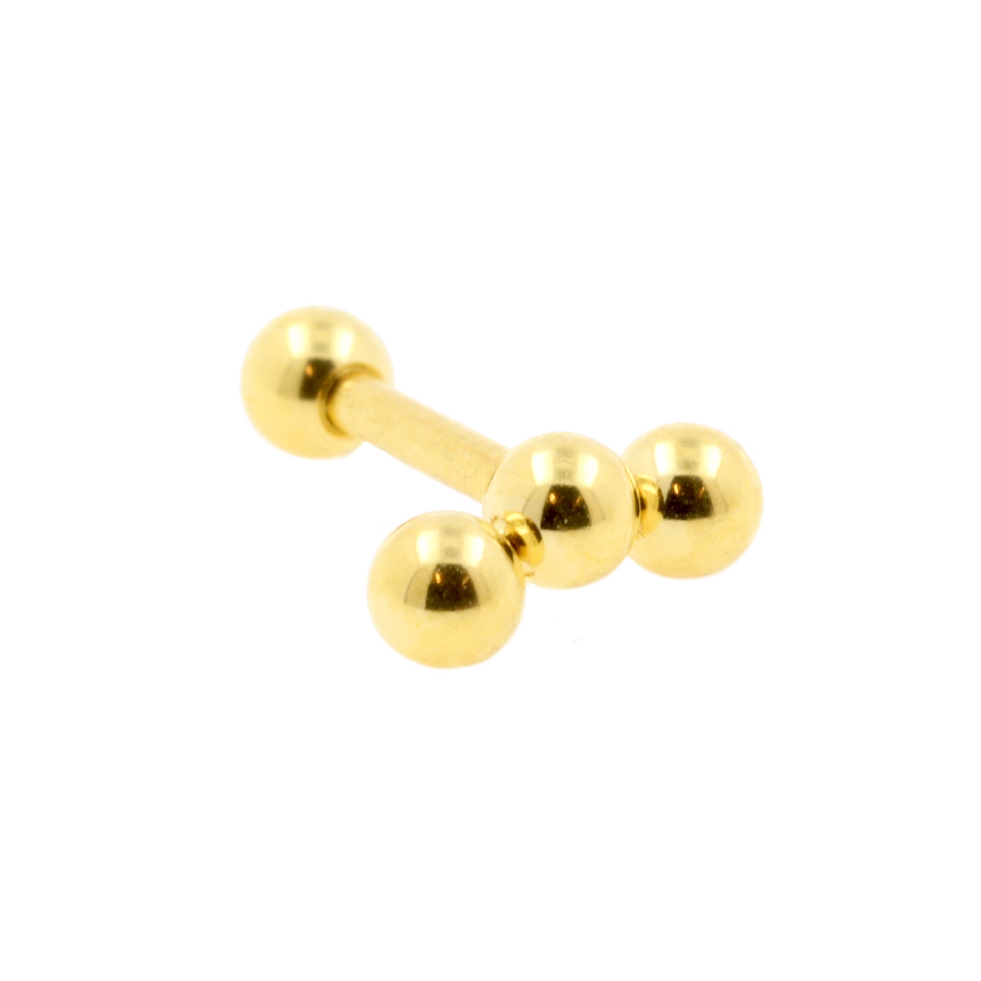 Surgical Steel Helix Barbell - Triple Dots 3 mm Gold