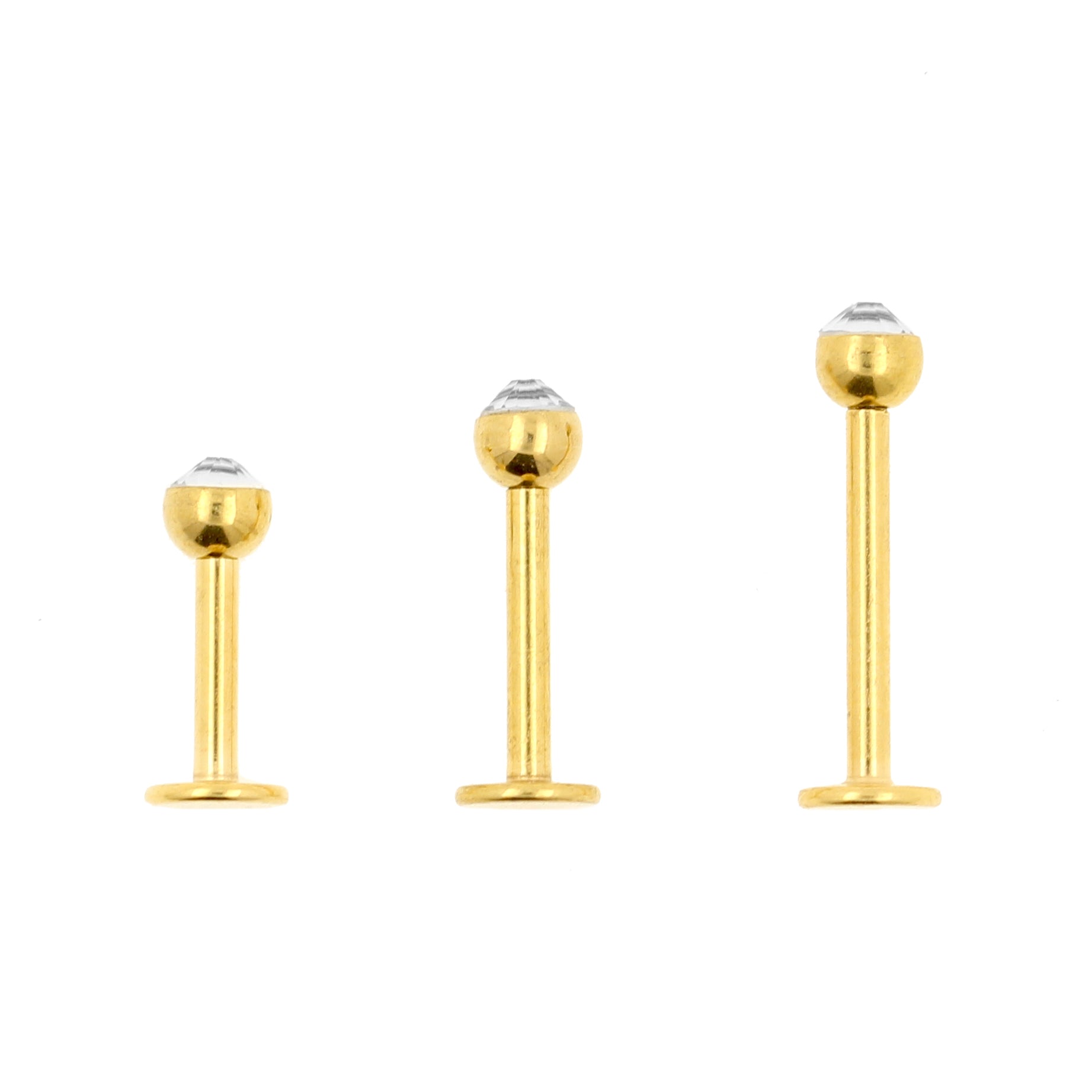 The perfect labrets for your lip piercings! These beautiful labrets measure 1,2 mm in thickness and are perfect for all kinds of piercings, including lip piercings. The labret is made of surgical steel and set with a small crystal. The back disc measures 4 mm in diameter. Available in silver, black, gold and rose gold, with crystals in different colors!