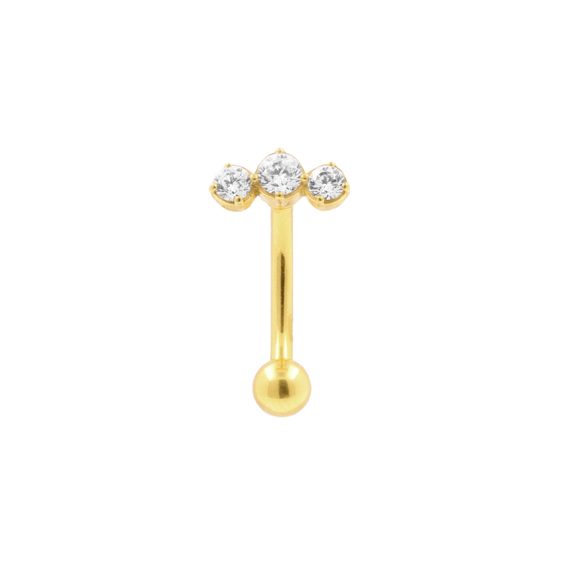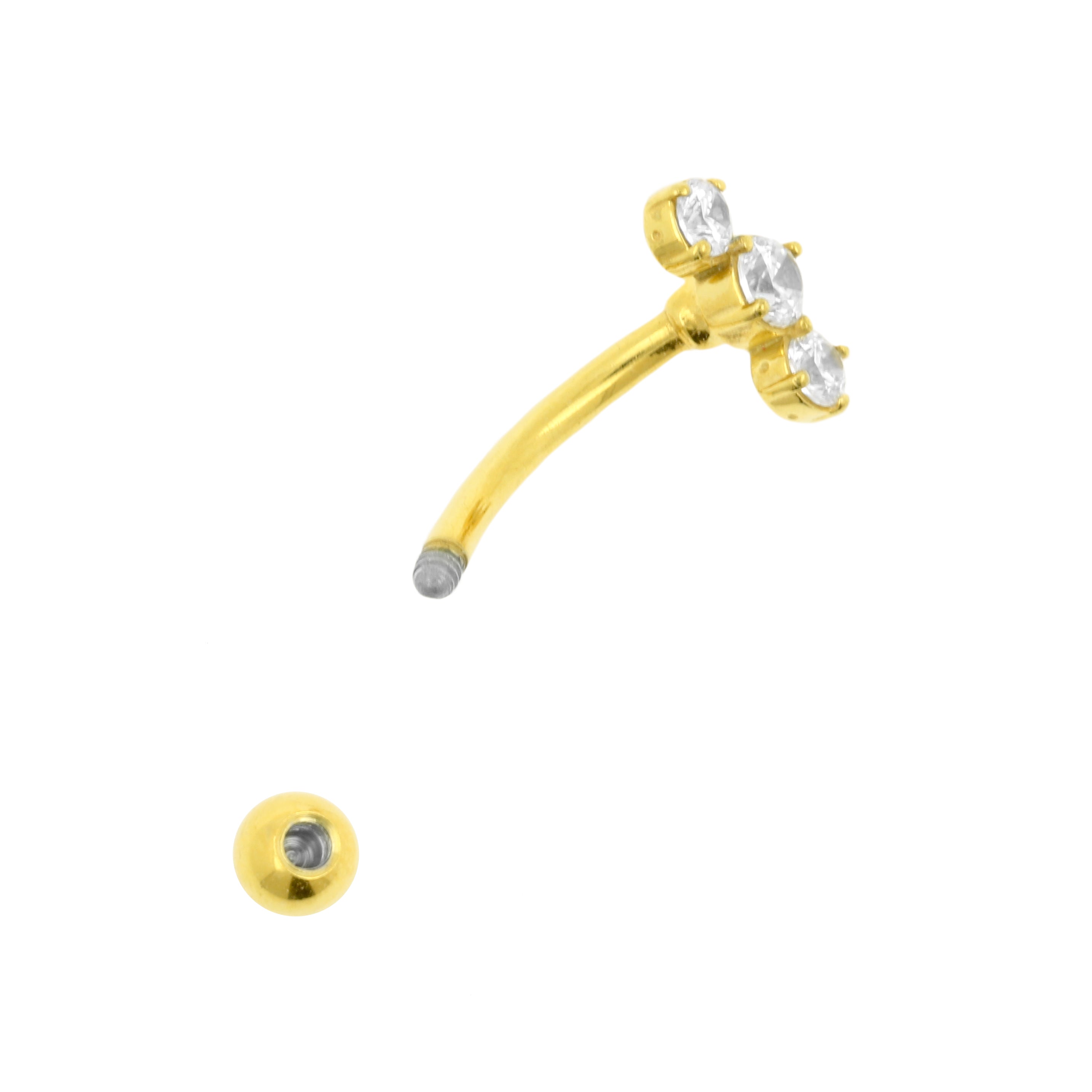 Surgical Steel Navel Curve Triple Zirconia Gold